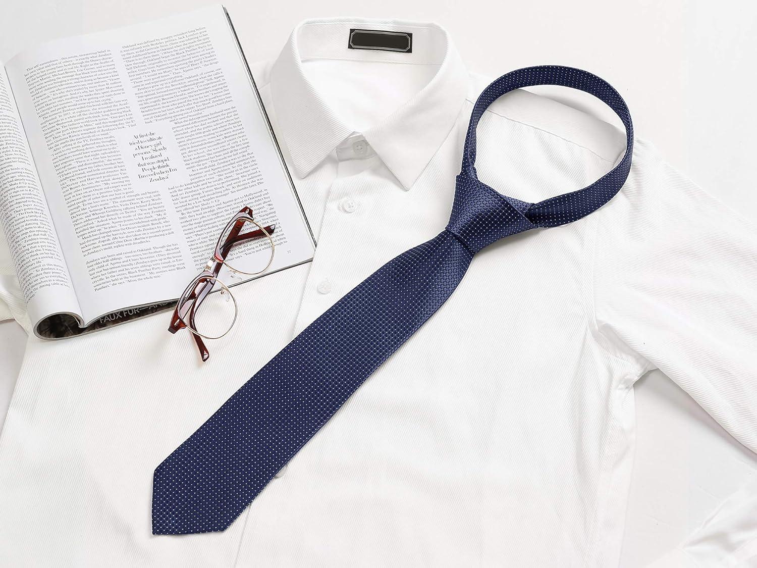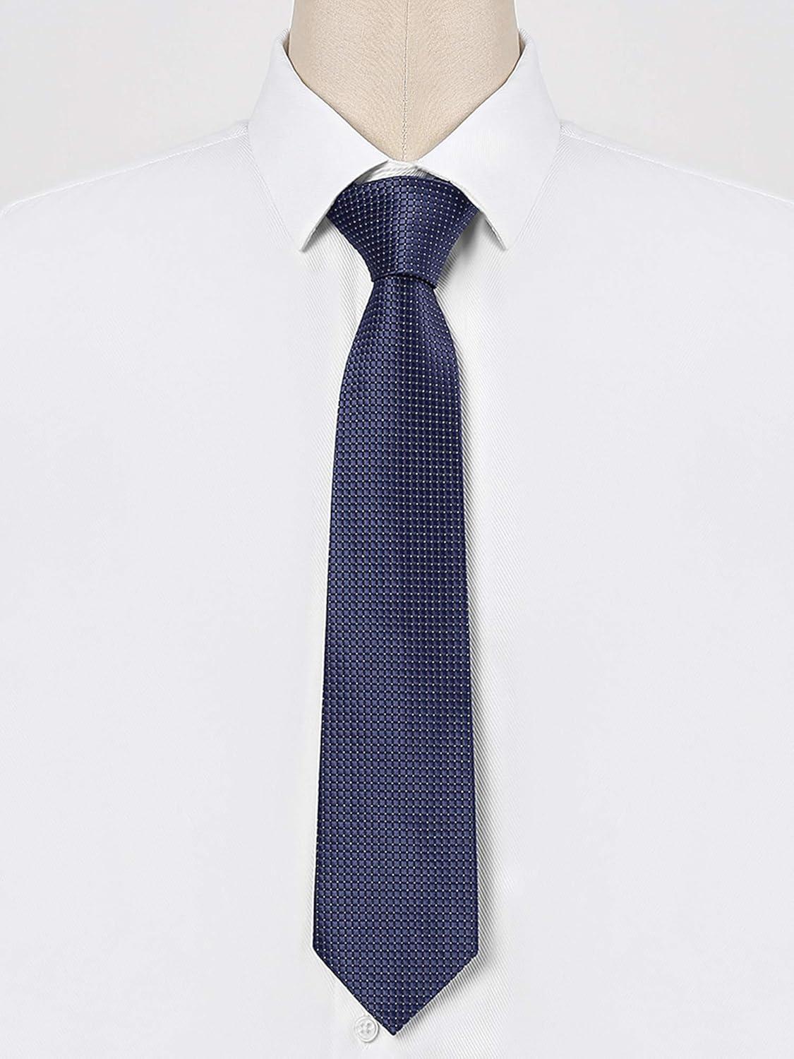 Allegra K Classic Solid Color Formal Necktie Plaid Ties for Men(Navy Blue)