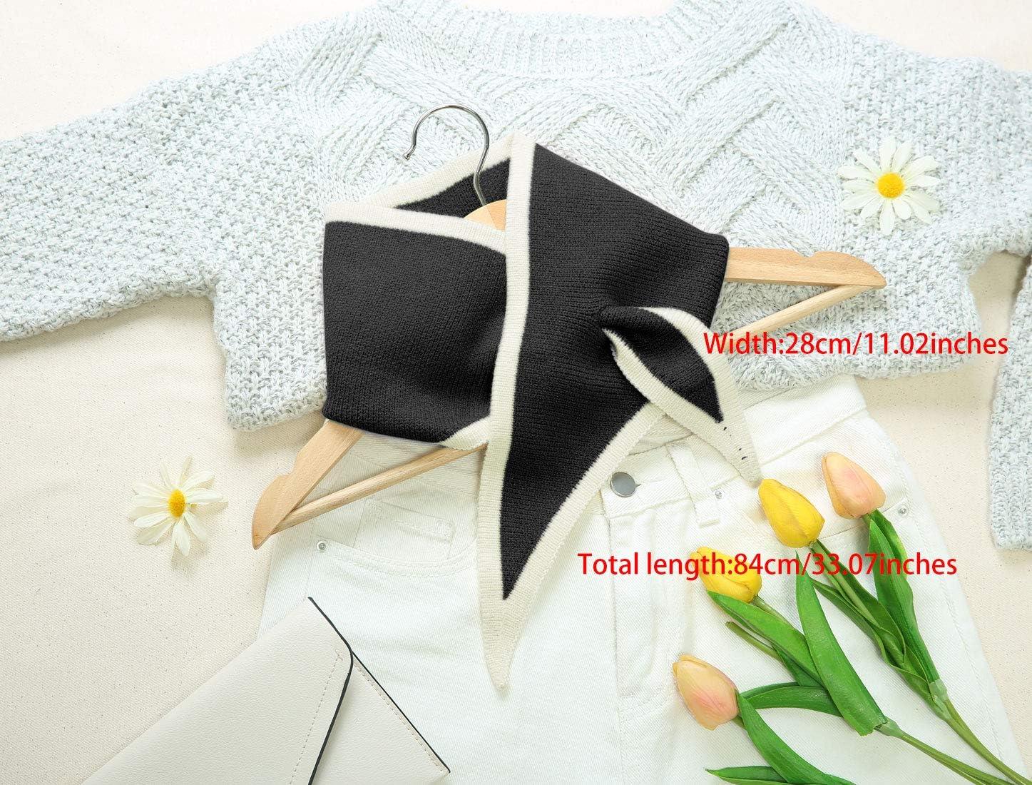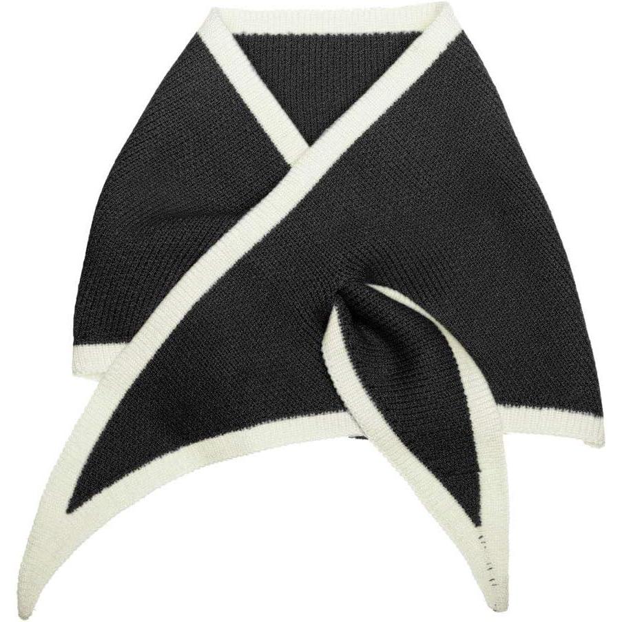 Allegra K Contrast Color Triangle Neck Scarves Knit Scarf Neckerchief Winter Shawl for Women(Black)