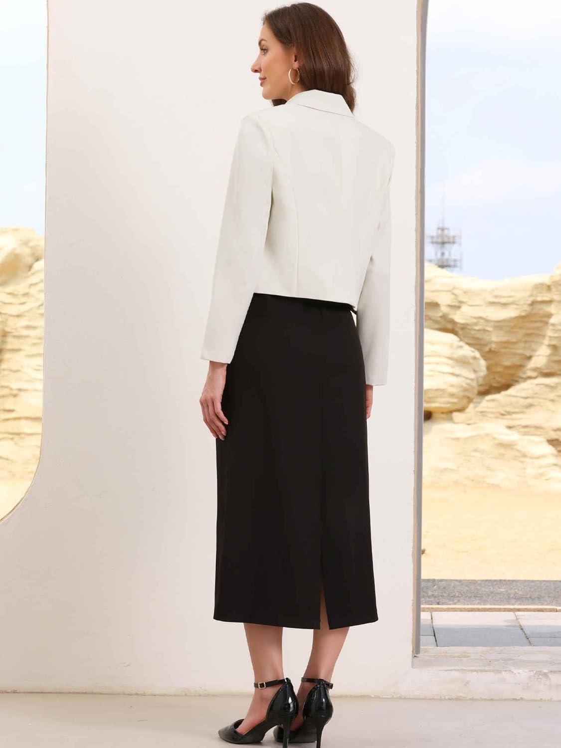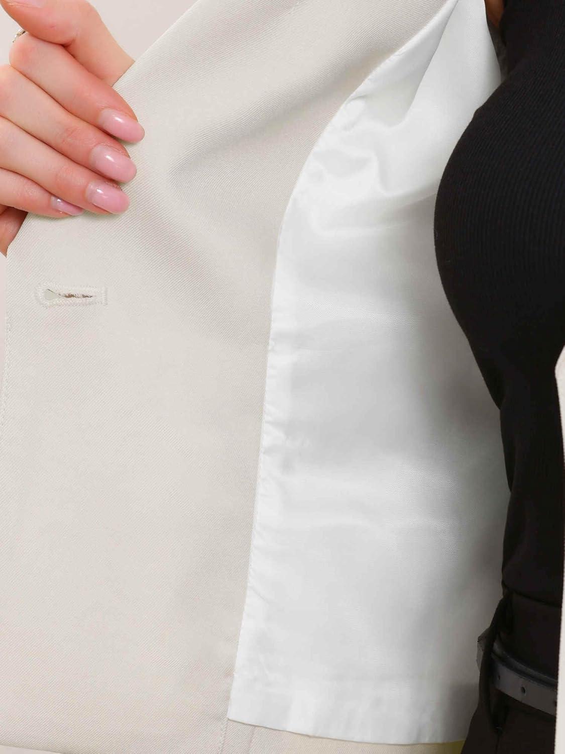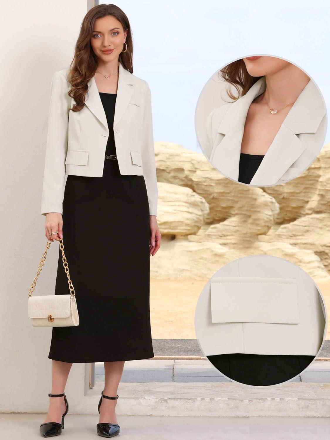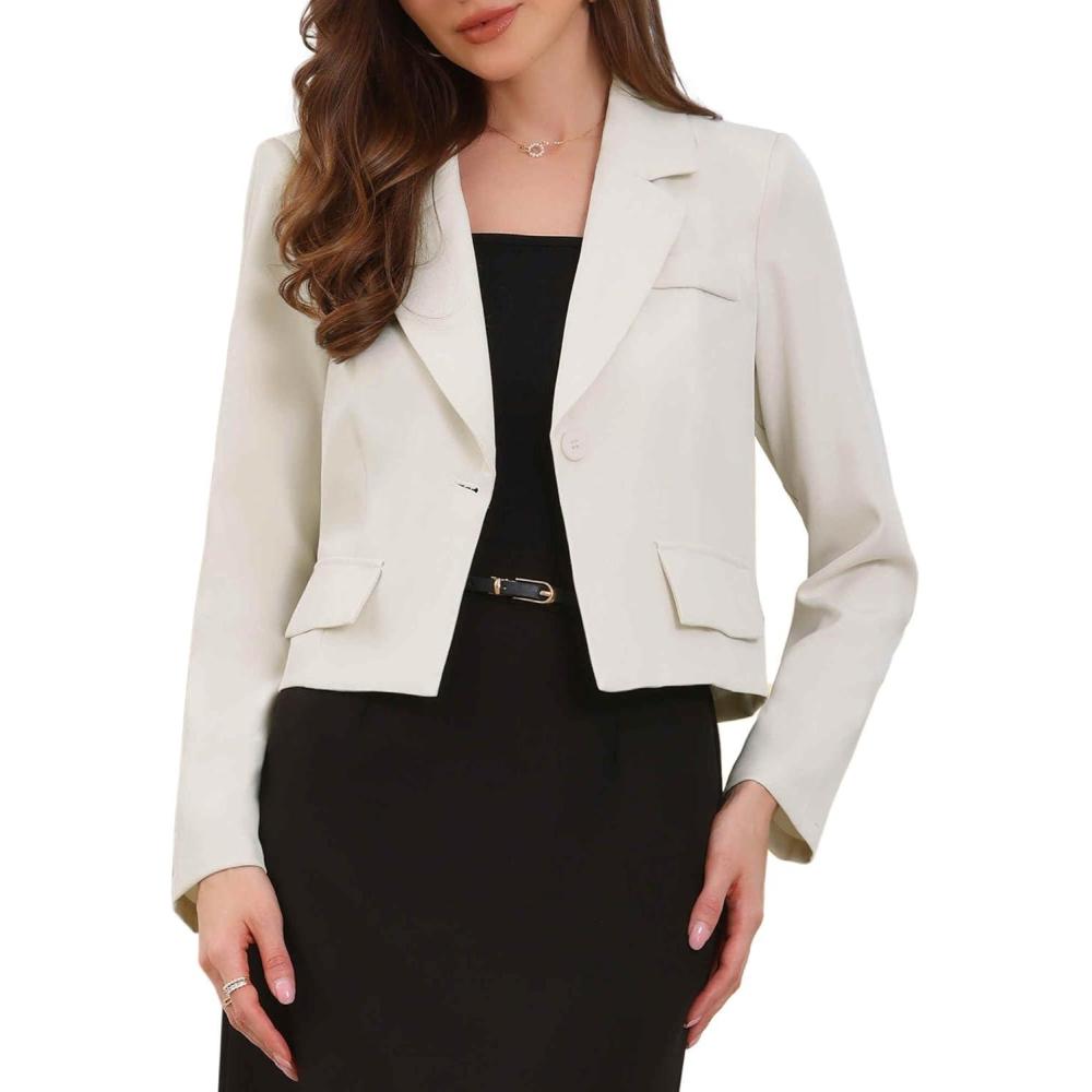 Allegra K Cropped Blazer for Women Notched Collar Long Sleeve Suit Jacket Business Casual Blazers(White)