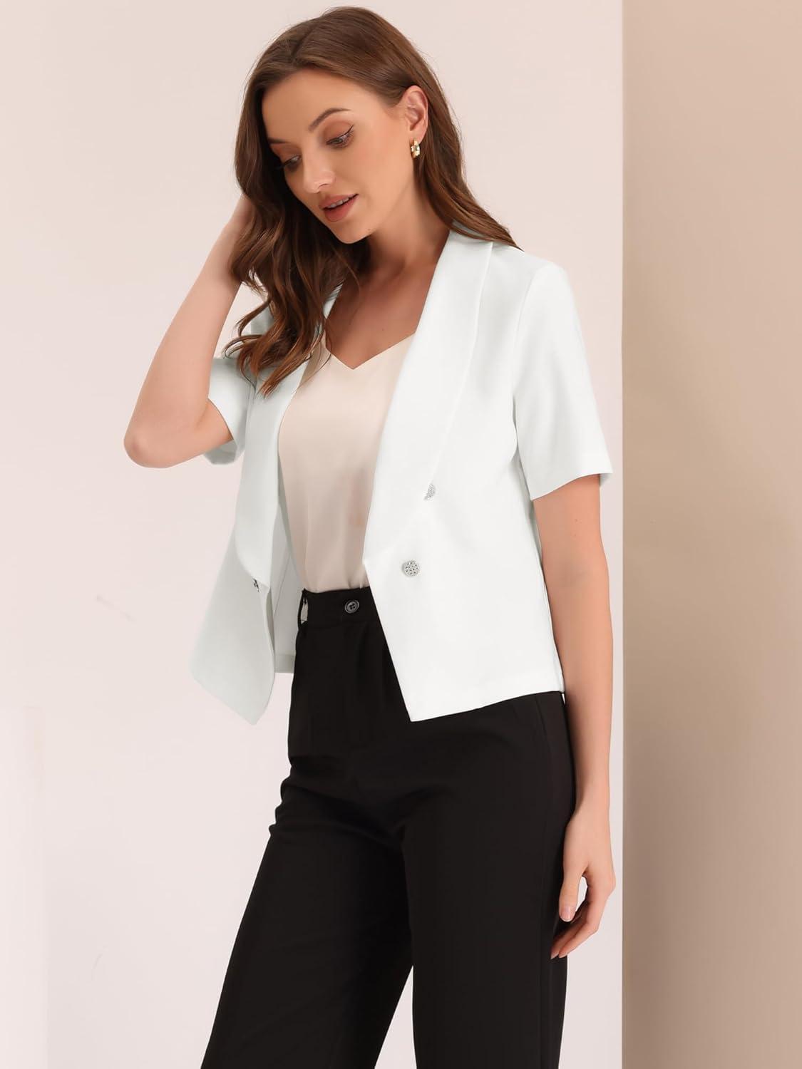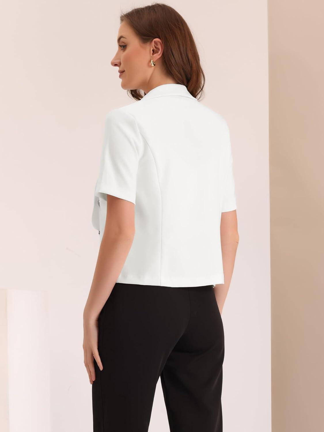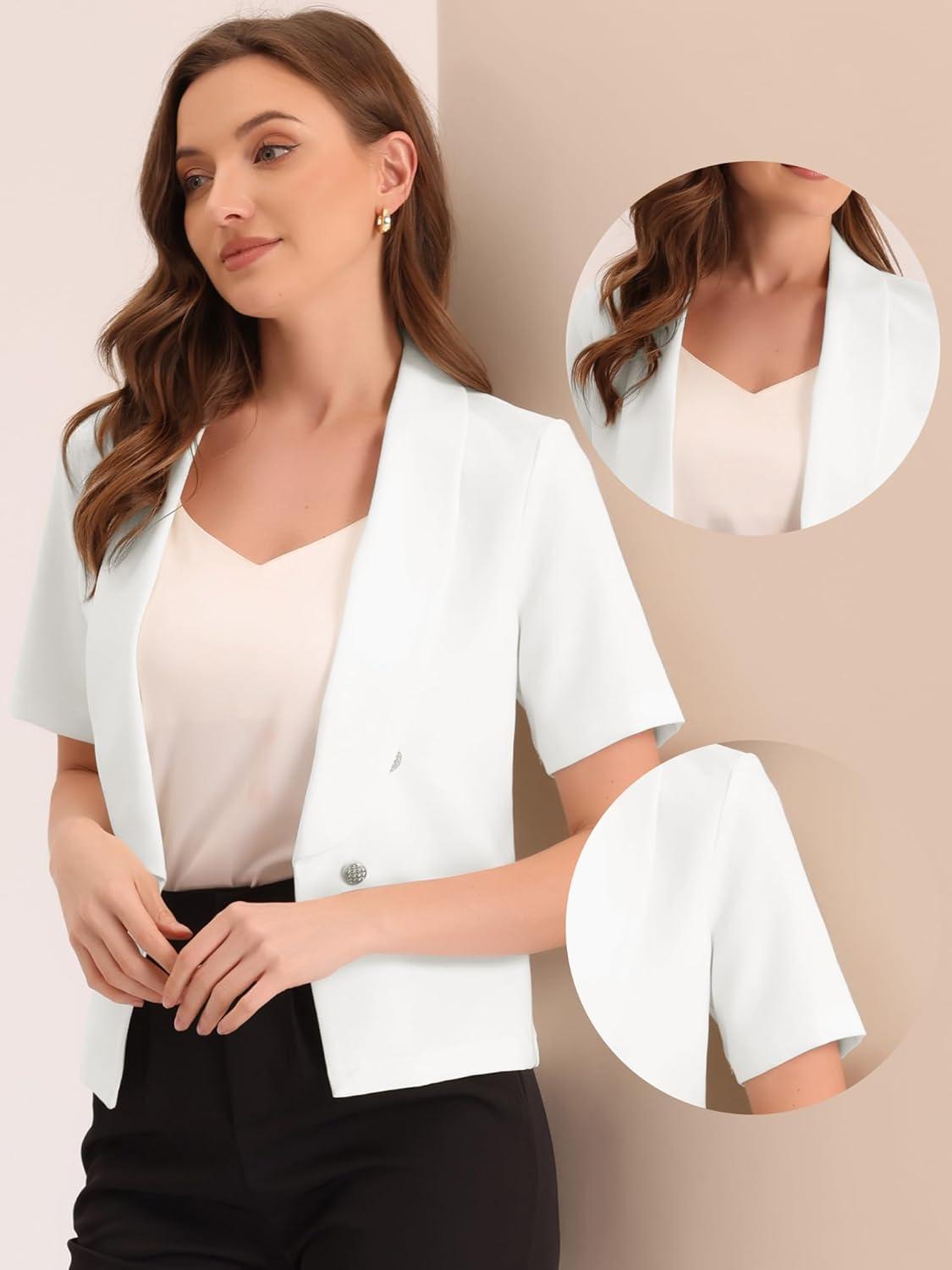 Allegra K Cropped Blazers for Women Summer Short Sleeve Open Front Jackets Blazer for Work Casual(Black)
