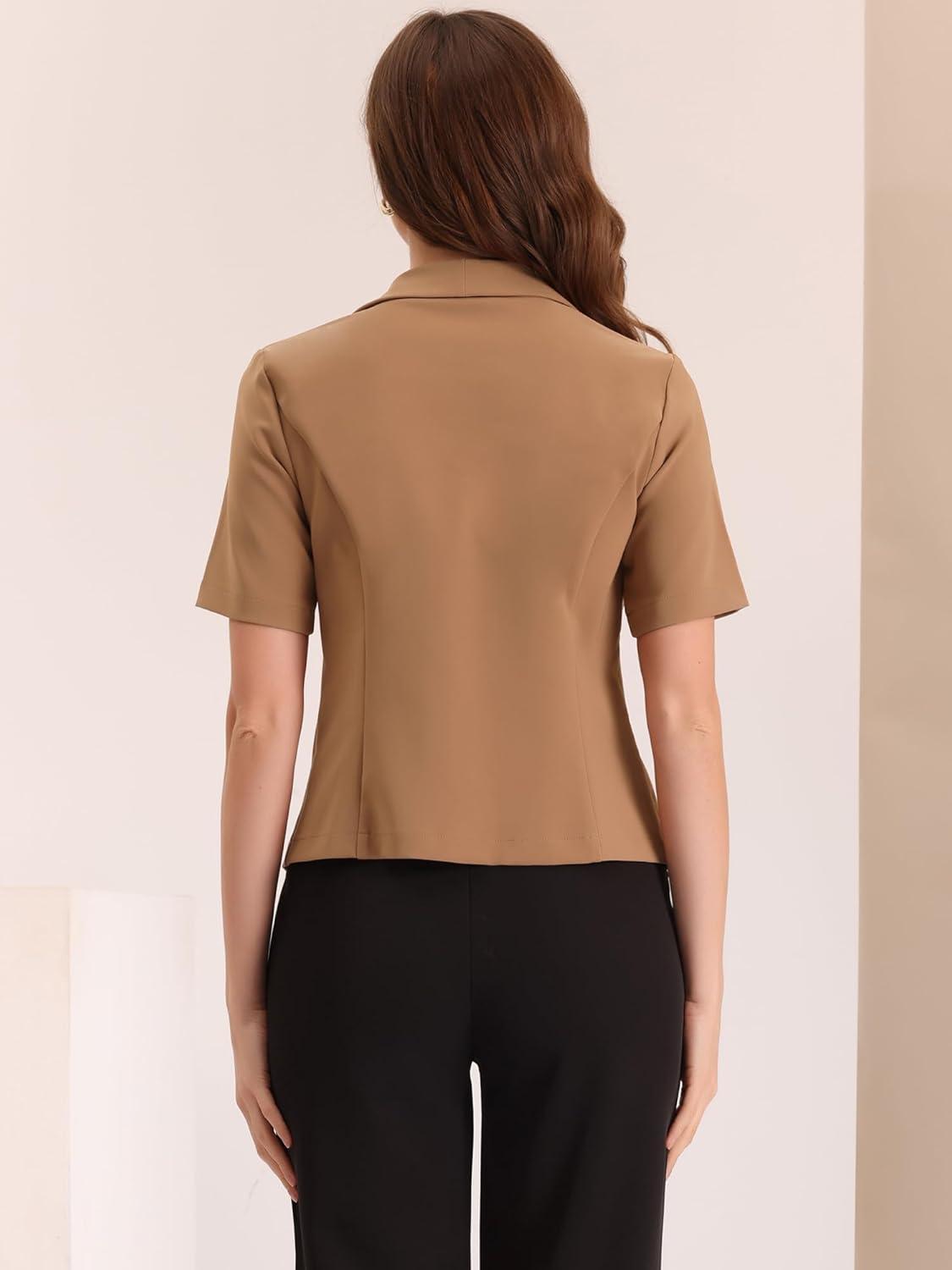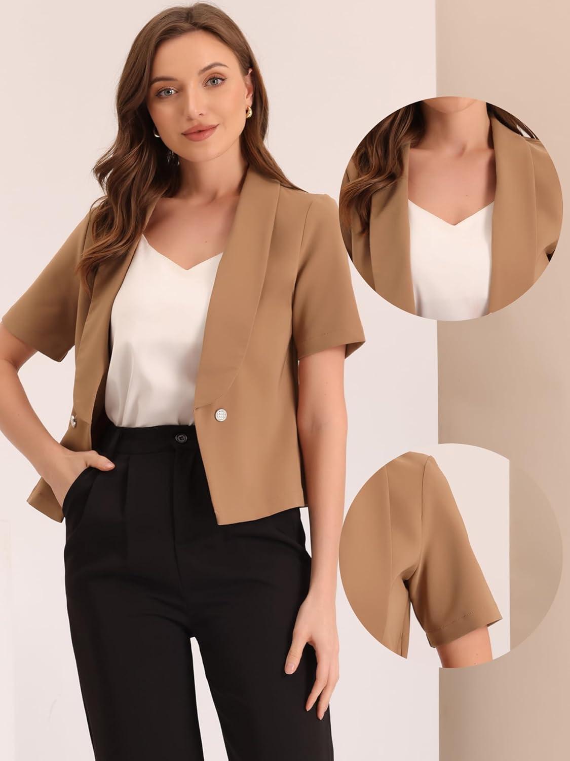 Allegra K Cropped Blazers for Women Summer Short Sleeve Open Front Jackets Blazer for Work Casual(Brown)