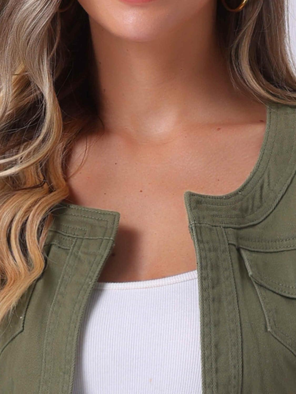 Be the first to review “Allegra K Denim Jacket for Women’s Collarless 2025 Cardigan 3/4 Sleeve Crop Jean Jackets(Army Green)”