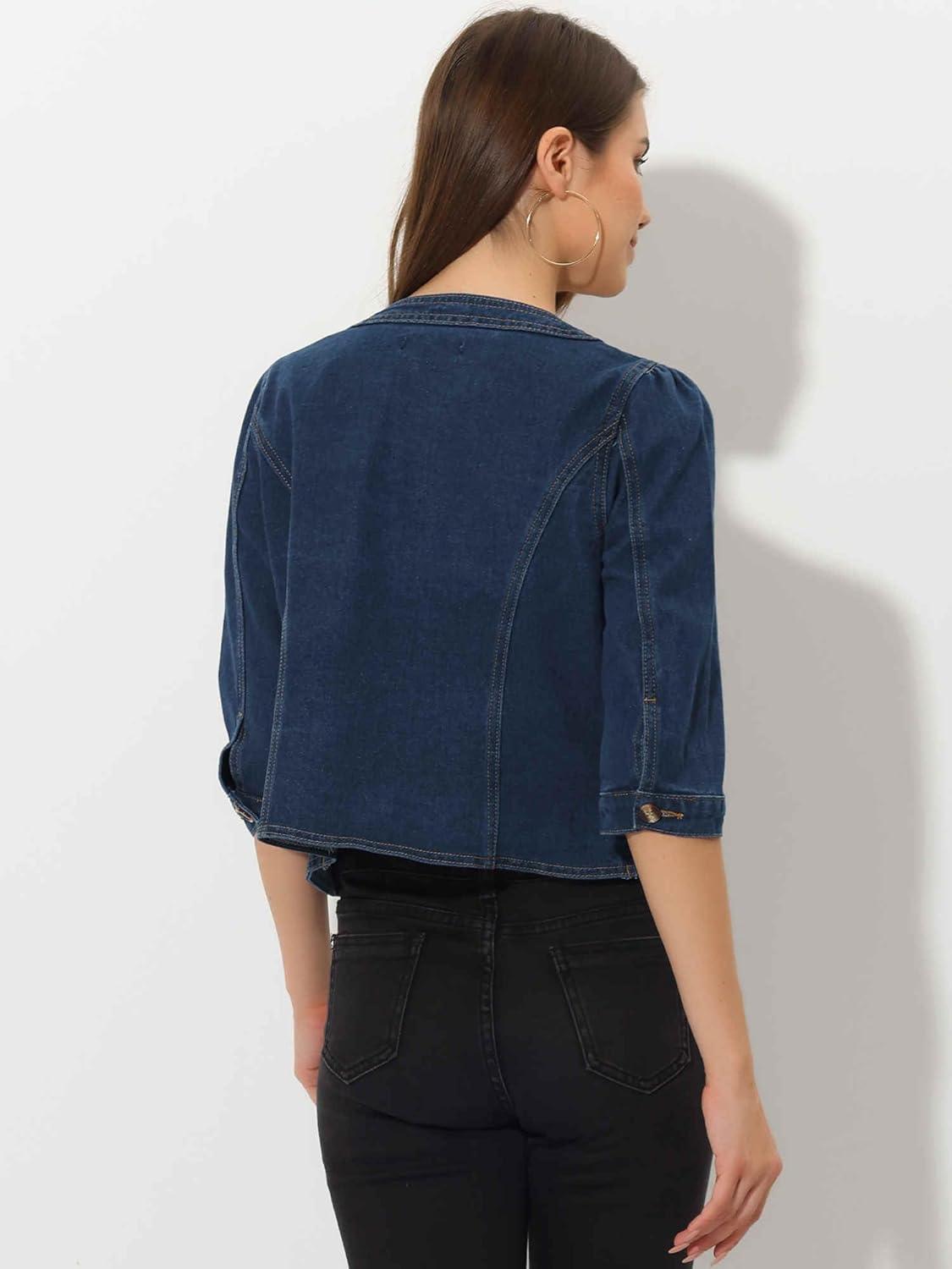 Be the first to review “Allegra K Denim Jacket for Women’s Collarless 2025 Cardigan 3/4 Sleeve Crop Jean Jackets(Dark Blue)”