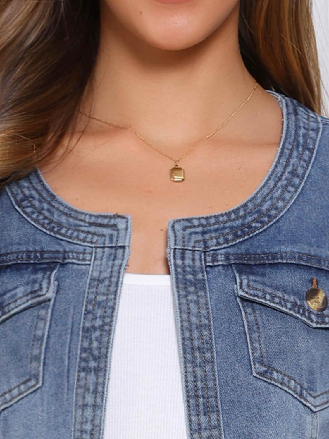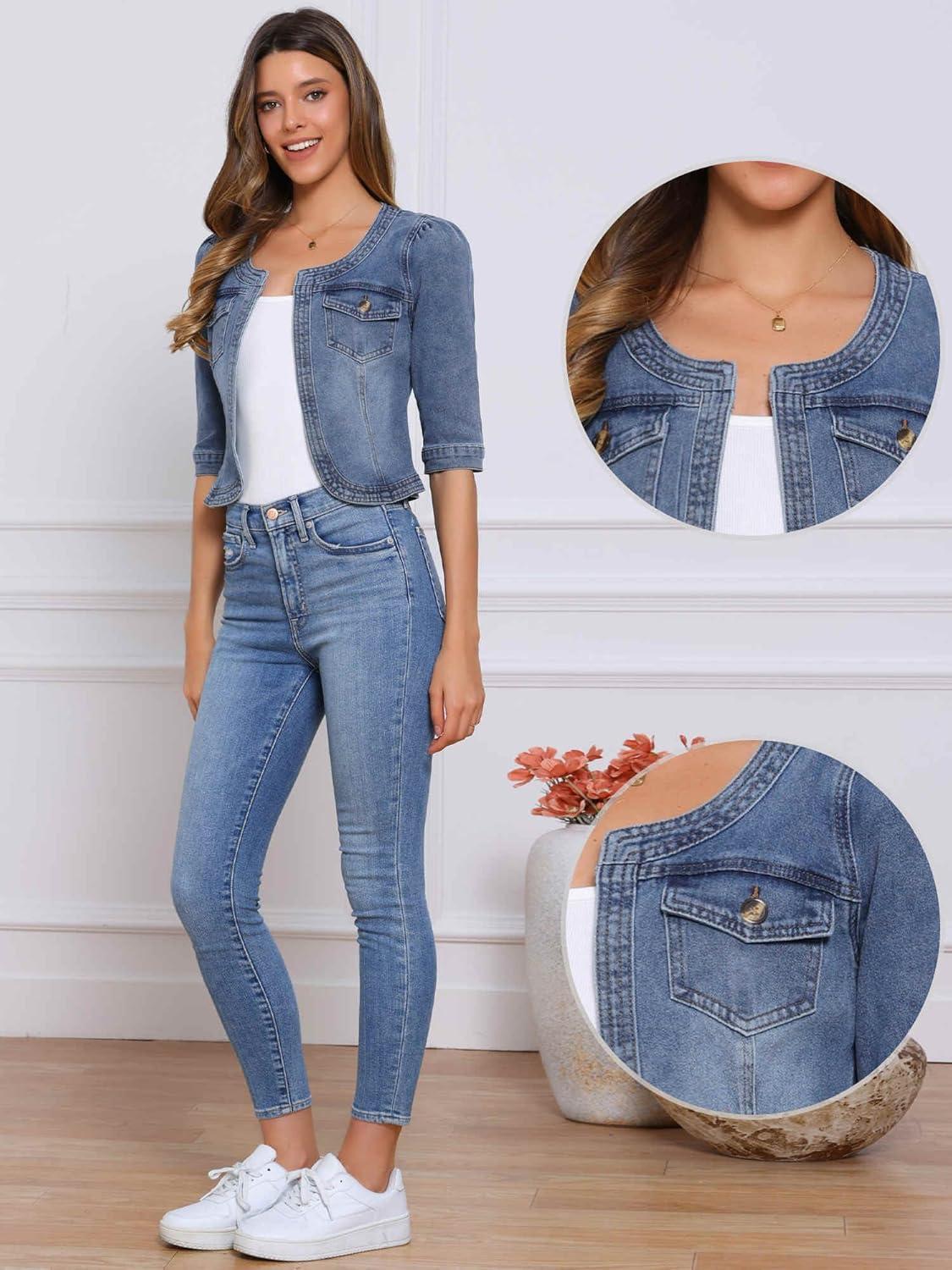 Be the first to review “Allegra K Denim Jacket for Women’s Collarless 2025 Cardigan 3/4 Sleeve Crop Jean Jackets(Gray Blue)”