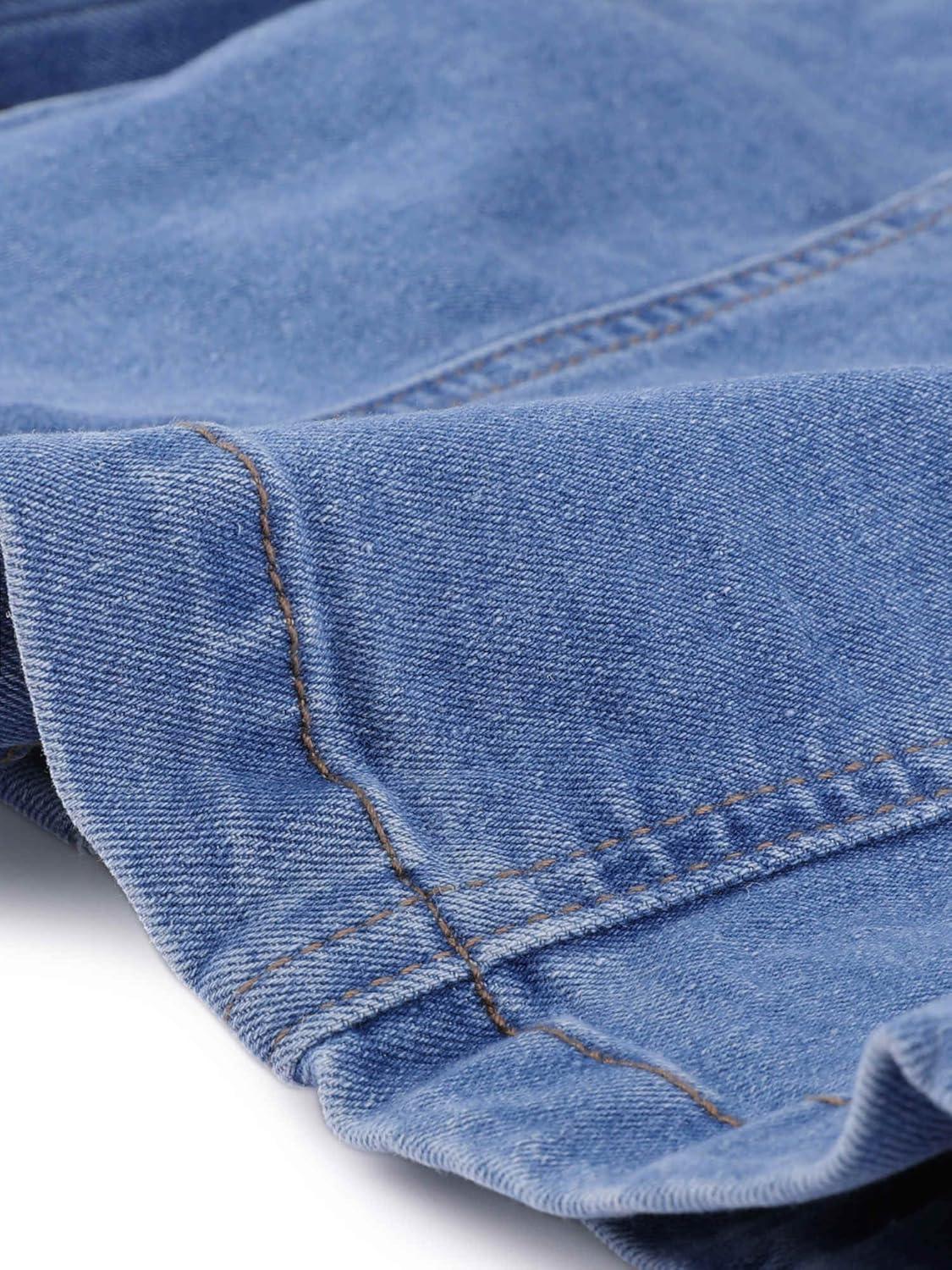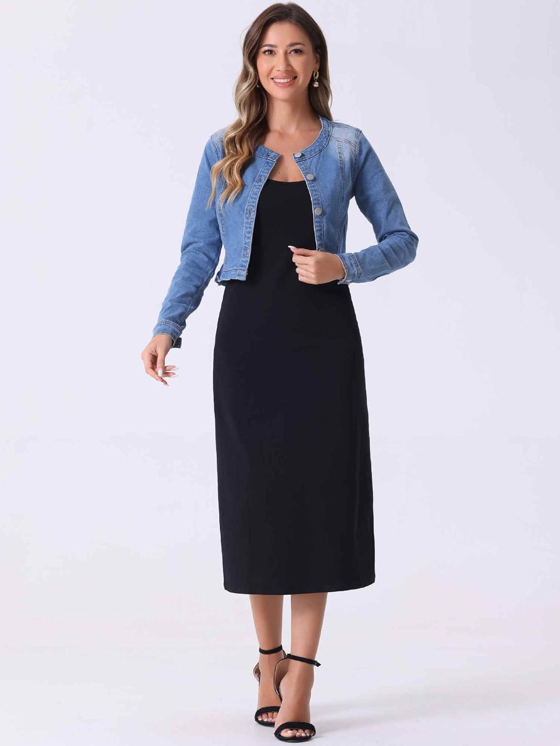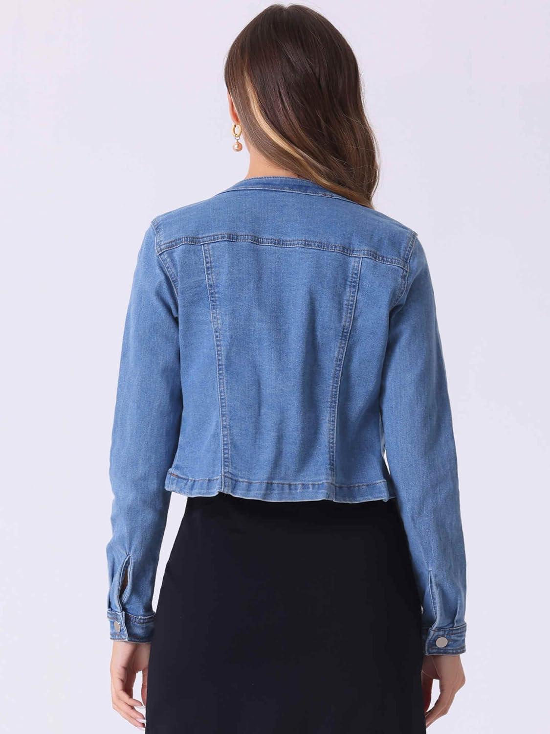 Allegra K Denim Jacket for Women’s Collarless Button Down Crop Jean Jackets(Light Blue)