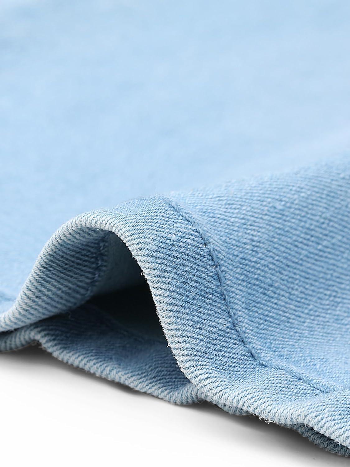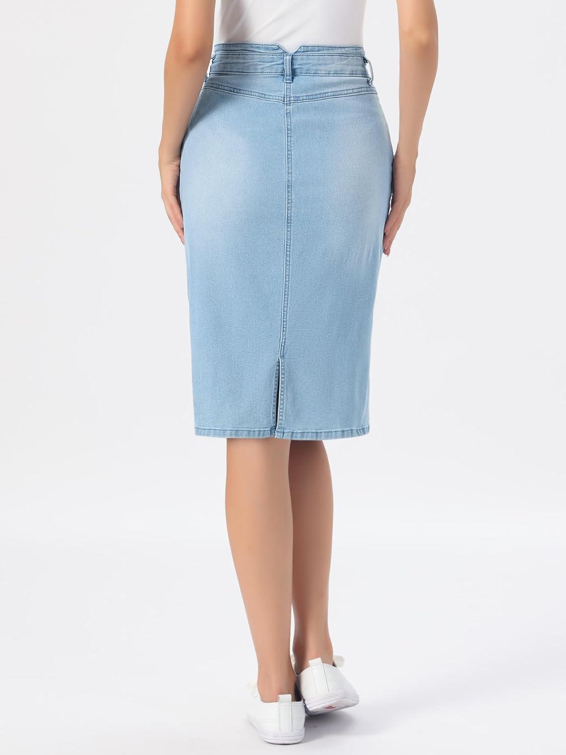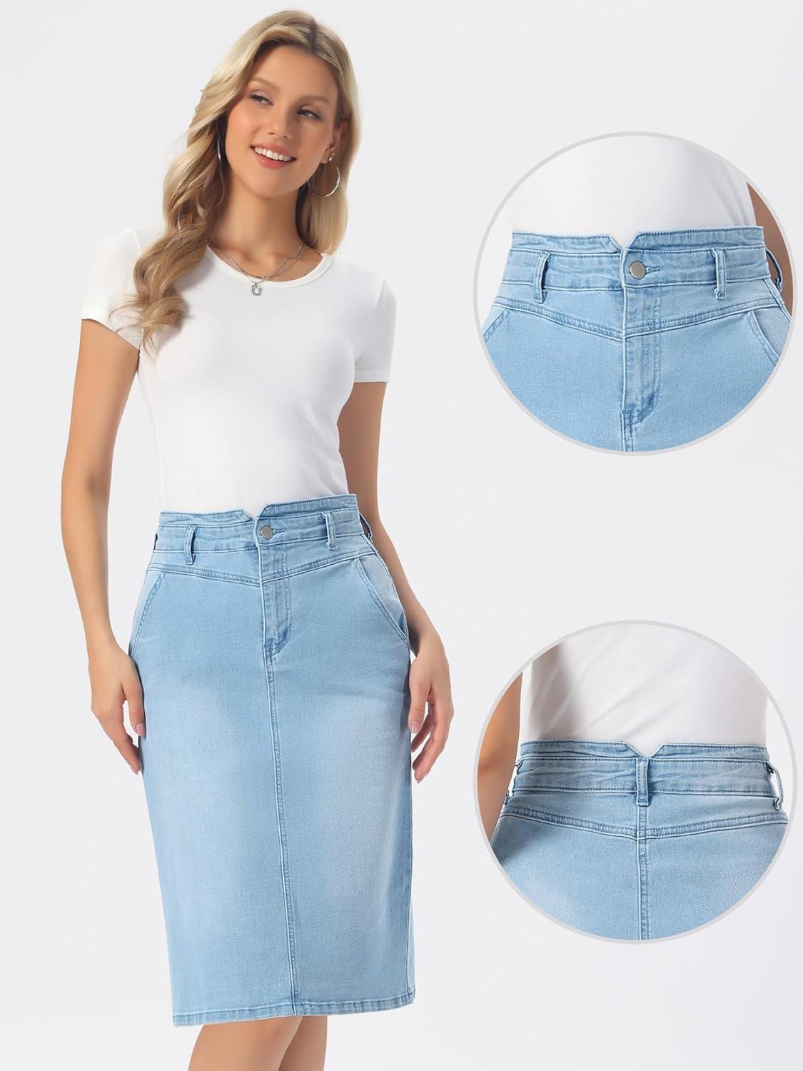 Allegra K Denim Skirt for Women High Waisted Casual Back Slit Stretchy Below Knee Length Jean Skirt(Light Blue)