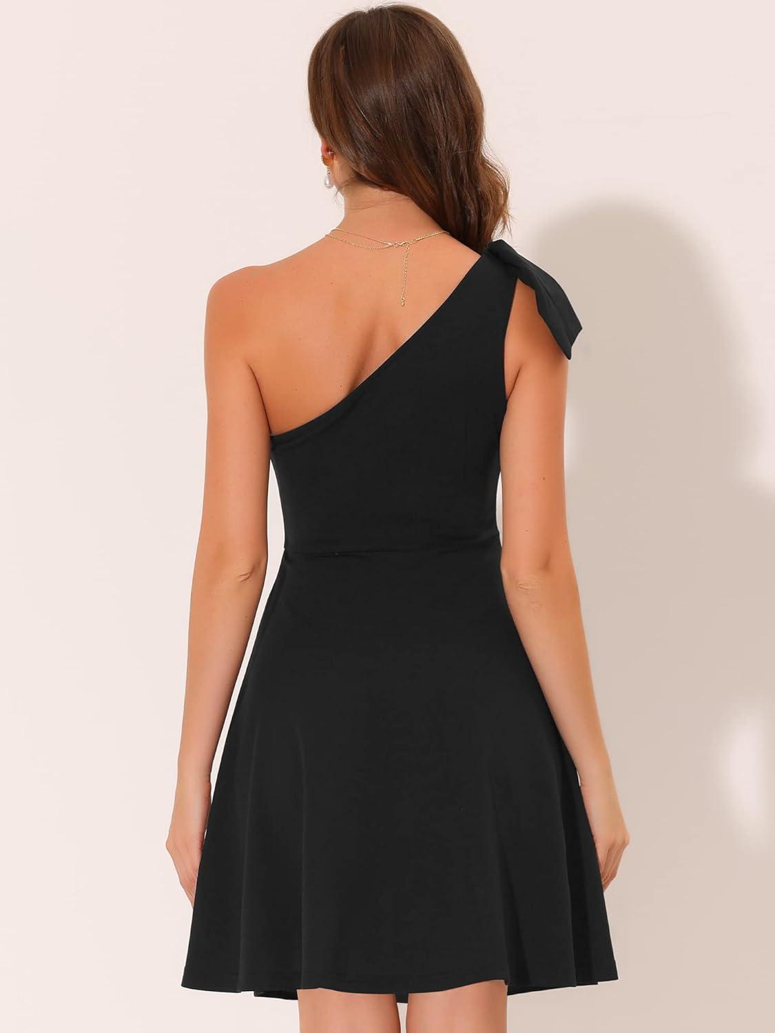 imageAllegra K Evening Cocktail Dress for Womens Party Elegant Flared One Shoulder Formal DressesBlack