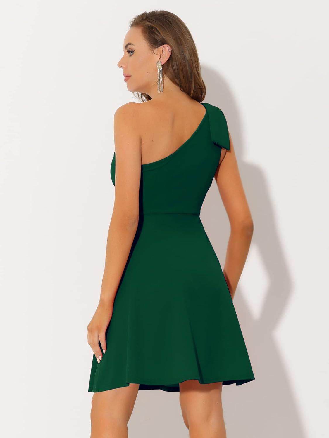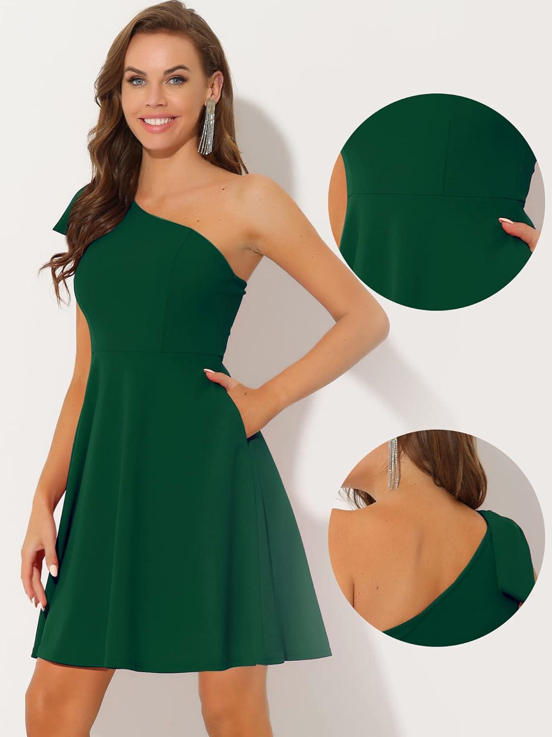 Allegra K Evening Cocktail Dress for Women’s Party Elegant Flared One Shoulder Formal Dresses(Dark Green)
