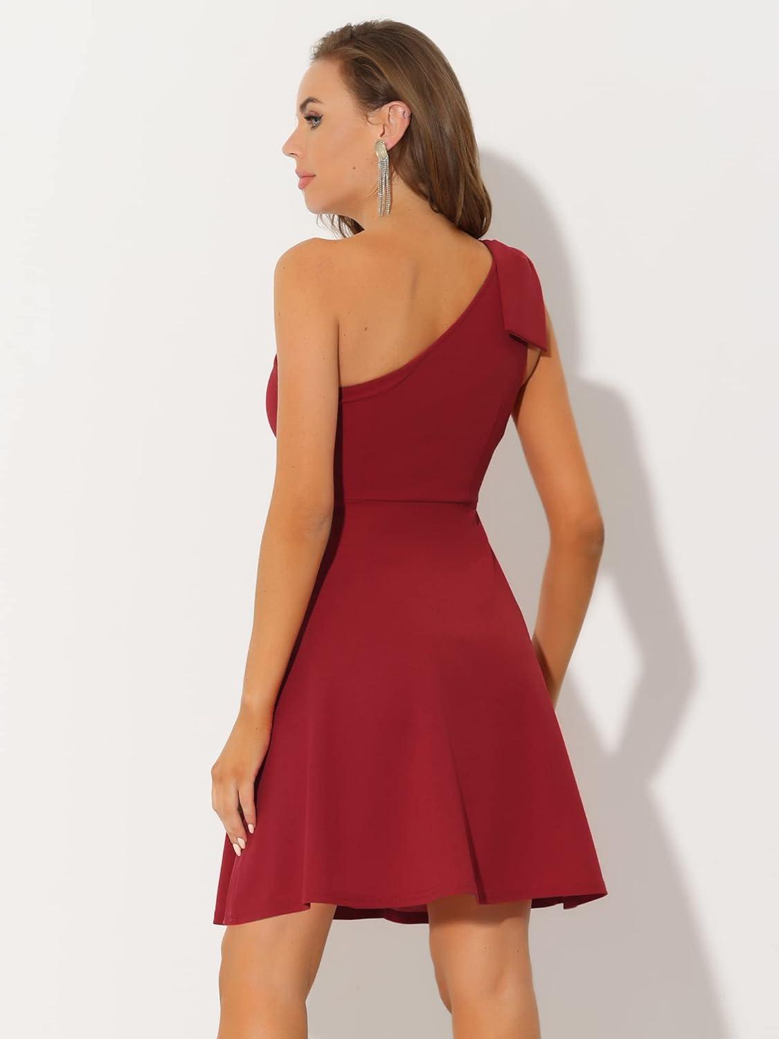 imageAllegra K Evening Cocktail Dress for Womens Party Elegant Flared One Shoulder Formal DressesRed
