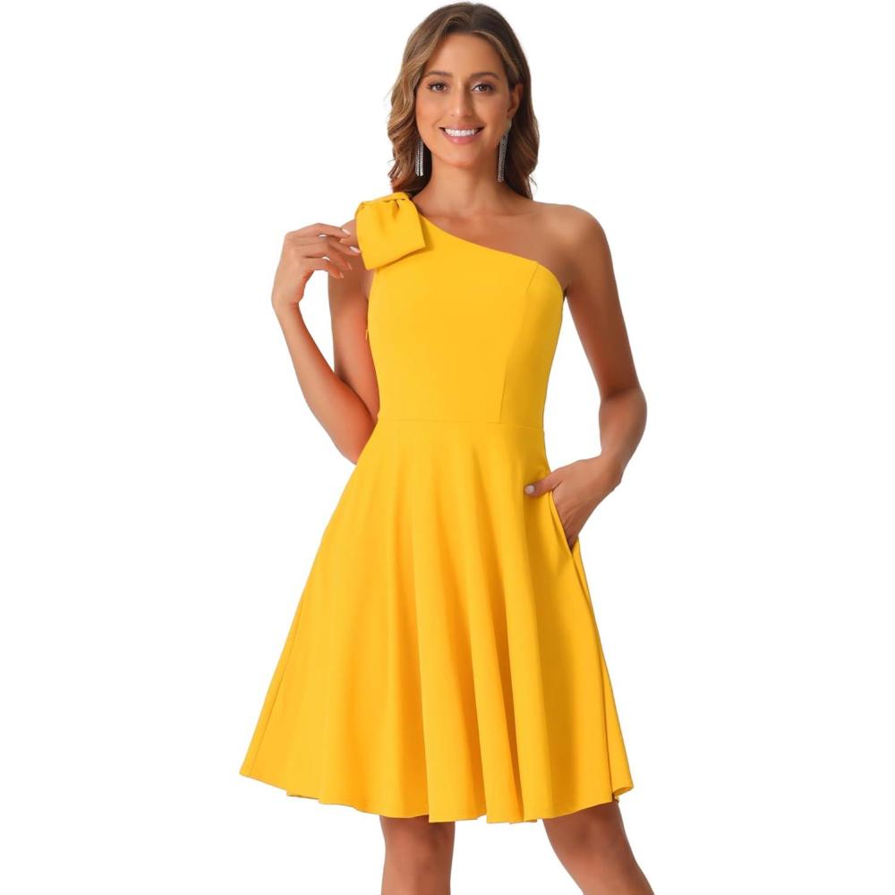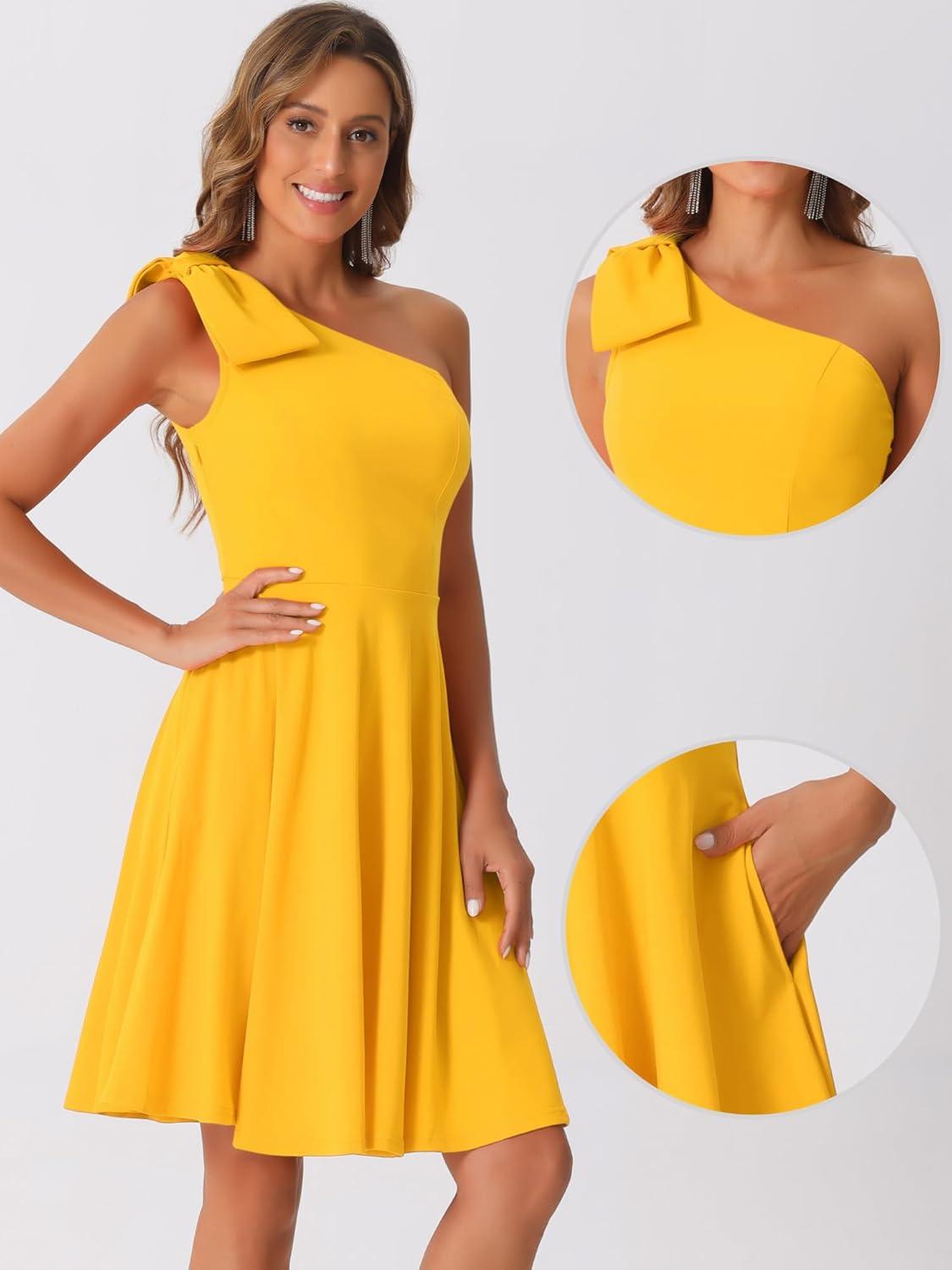 imageAllegra K Evening Cocktail Dress for Womens Party Elegant Flared One Shoulder Formal DressesYellow