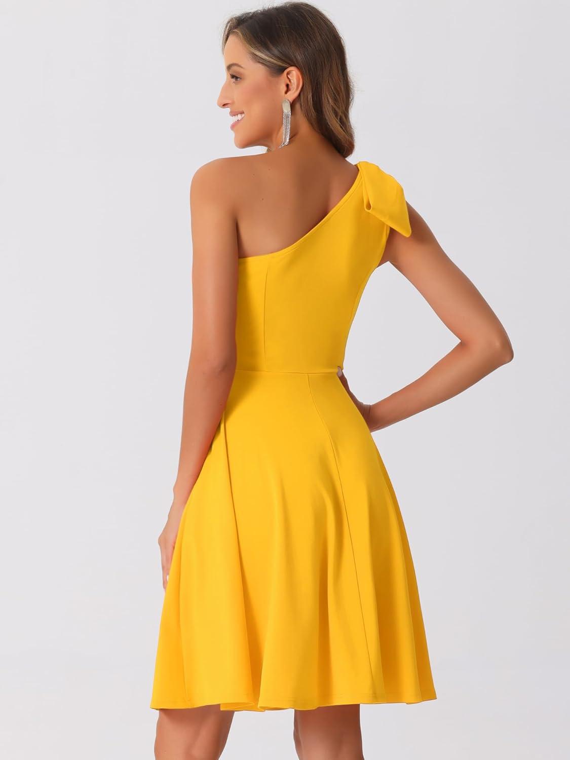 Allegra K Evening Cocktail Dress for Women's Party Elegant Flared One Shoulder Formal Dresses(Yellow)