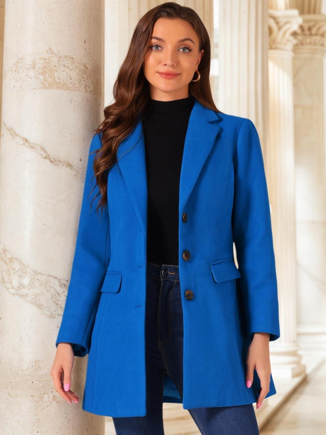 Allegra K Fall Coats for Women’s 2025 Pea Coats Long Winter Trench Coat(Deep Blue)