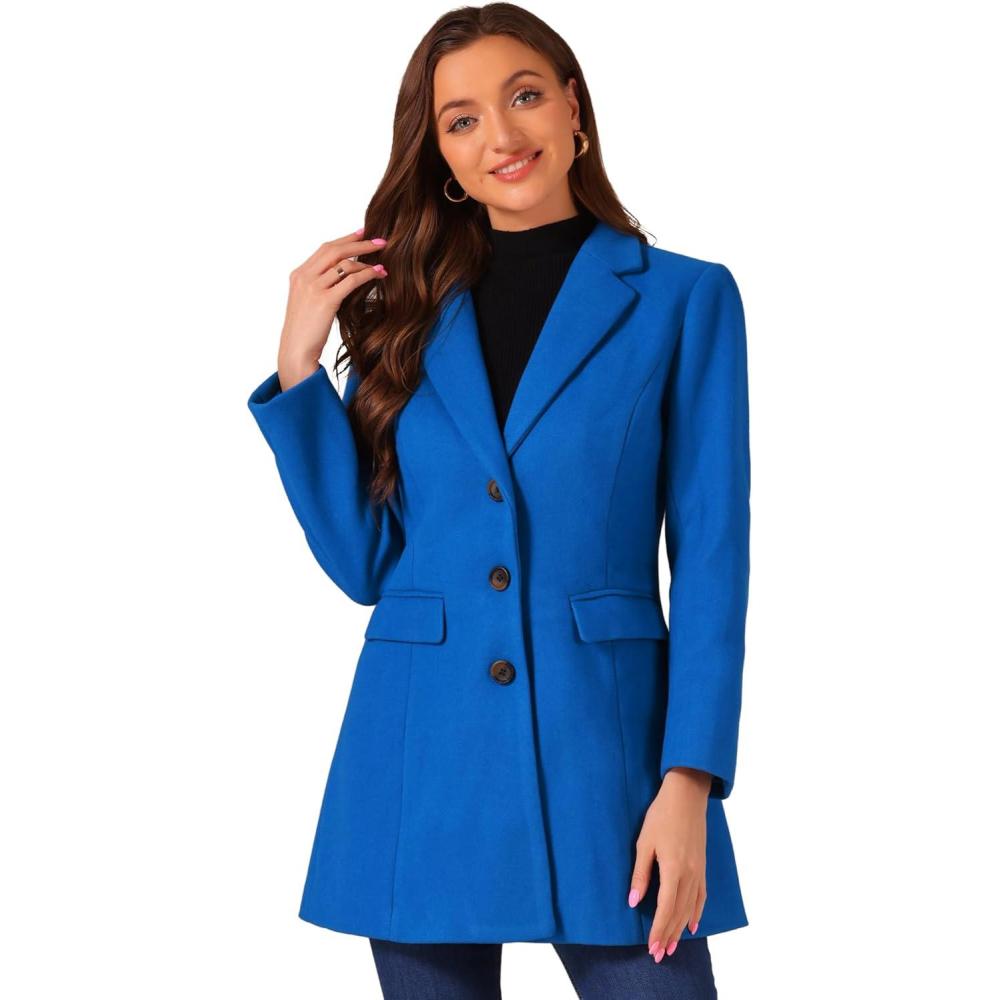 imageAllegra K Fall Coats for Womens 2025 Pea Coats Long Winter Trench CoatDeep Blue