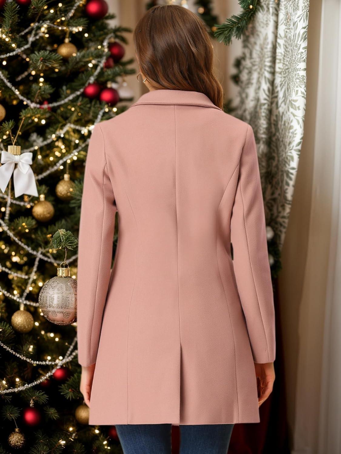 Allegra K Fall Coats for Women’s 2025 Pea Coats Long Winter Trench Coat(Dusty Pink)
