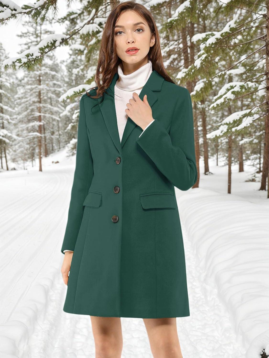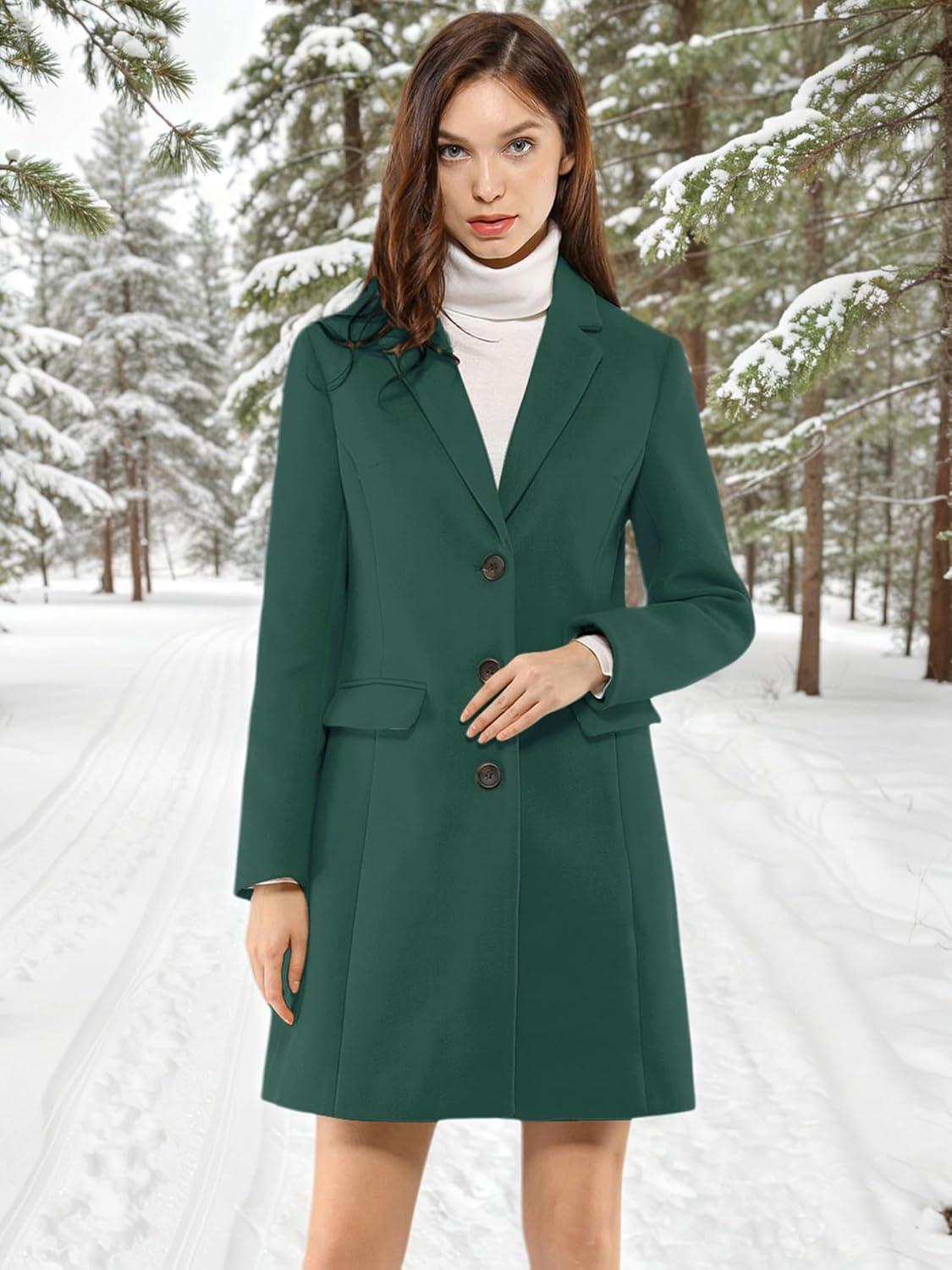 Allegra K Fall Coats for Women's 2025 Pea Coats Long Winter Trench Coat(Green)