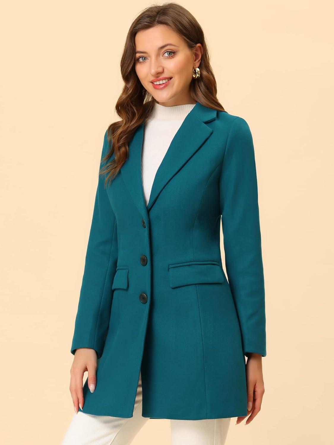 Allegra K Fall Coats for Women’s 2025 Pea Coats Long Winter Trench Coat(Lake Blue)