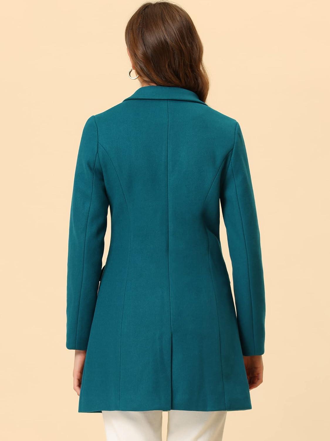 Allegra K Fall Coats for Women's 2025 Pea Coats Long Winter Trench Coat(Lake Blue)