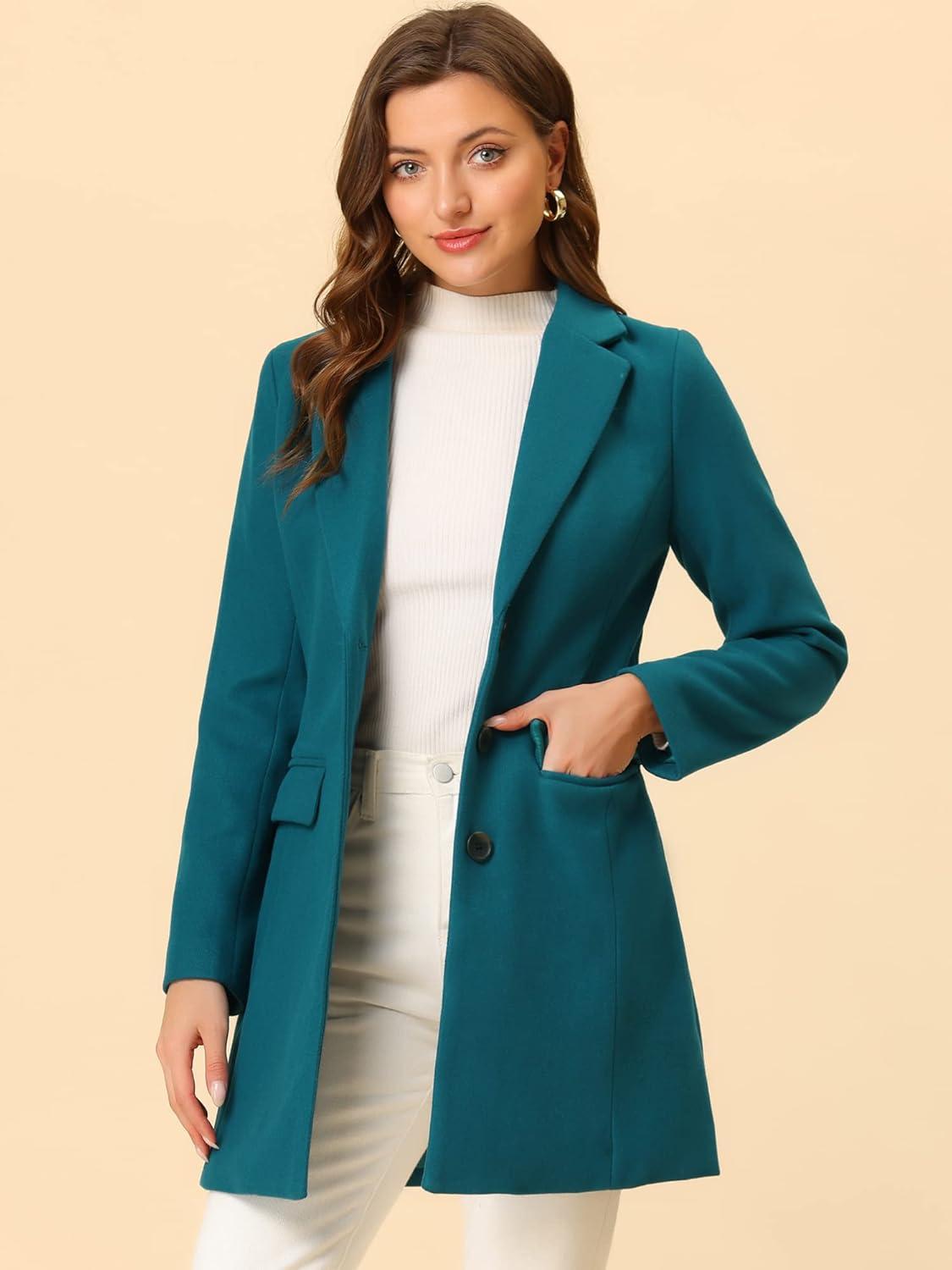 imageAllegra K Fall Coats for Womens 2025 Pea Coats Long Winter Trench CoatLake Blue
