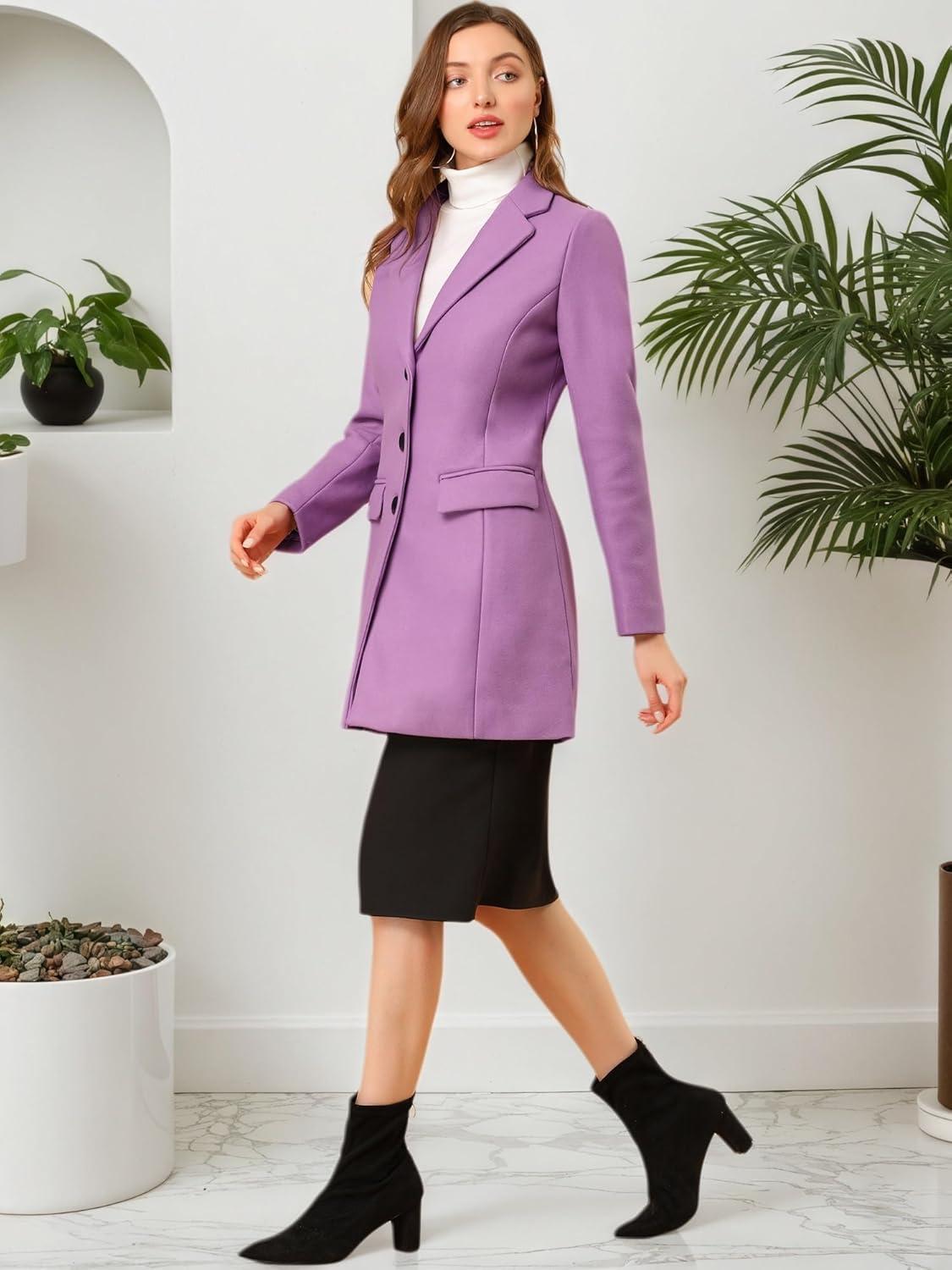 Allegra K Fall Coats for Women's 2025 Pea Coats Long Winter Trench Coat(Light Purple)