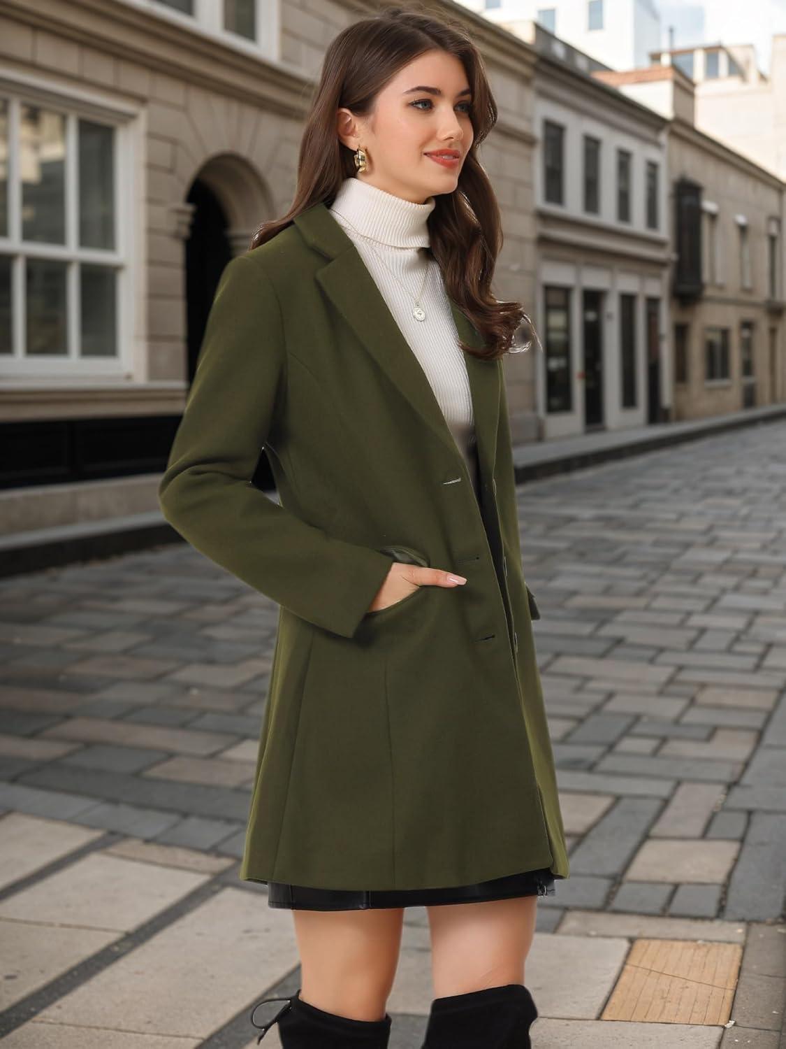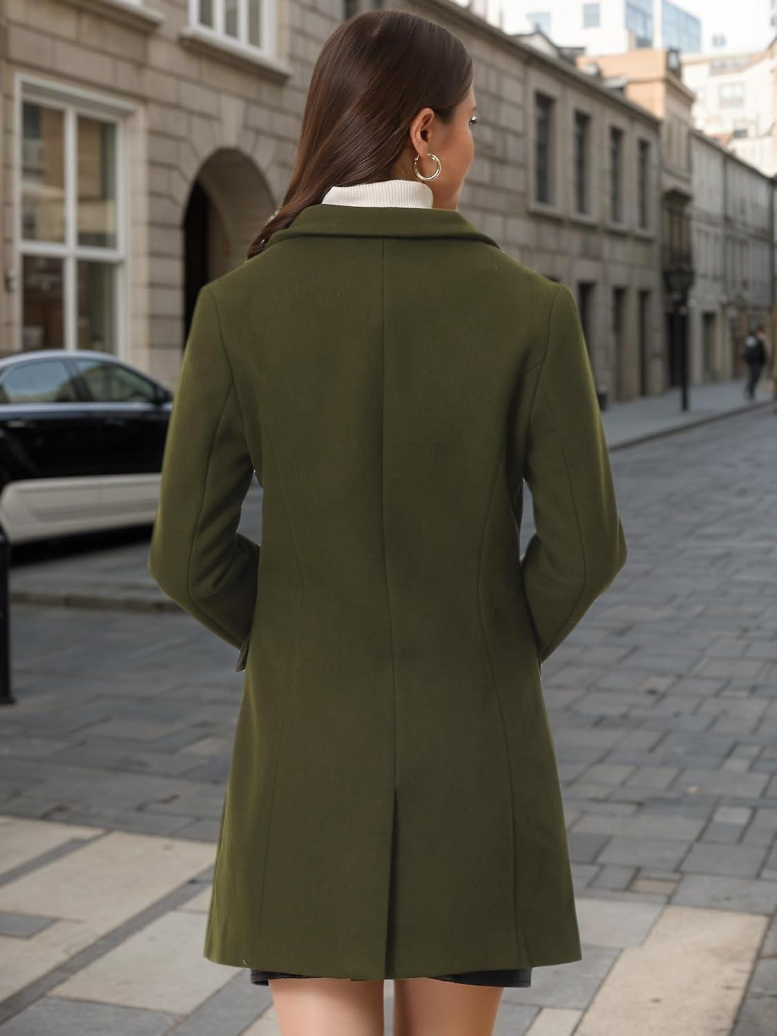 Allegra K Fall Coats for Women's 2025 Pea Coats Long Winter Trench Coat(Olive Green)
