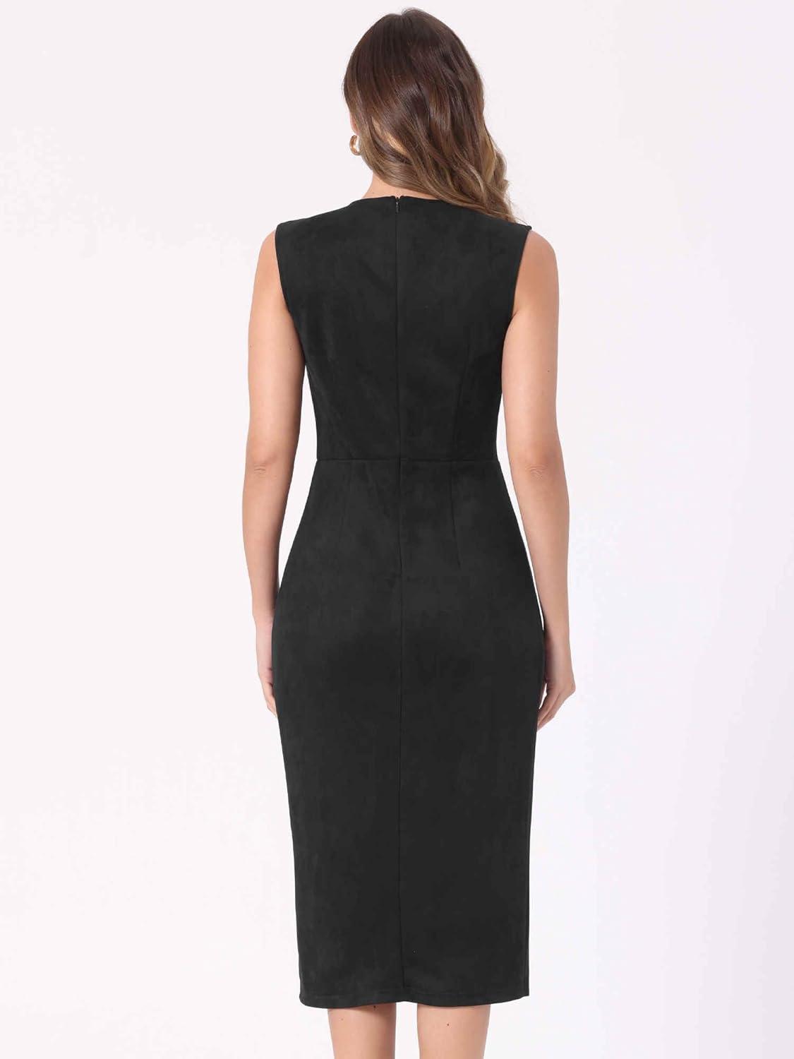 Allegra K Faux Suede Dresses for Women’s Sleeveless Crewneck Split Hem Work Office Sheath Dress(Black)
