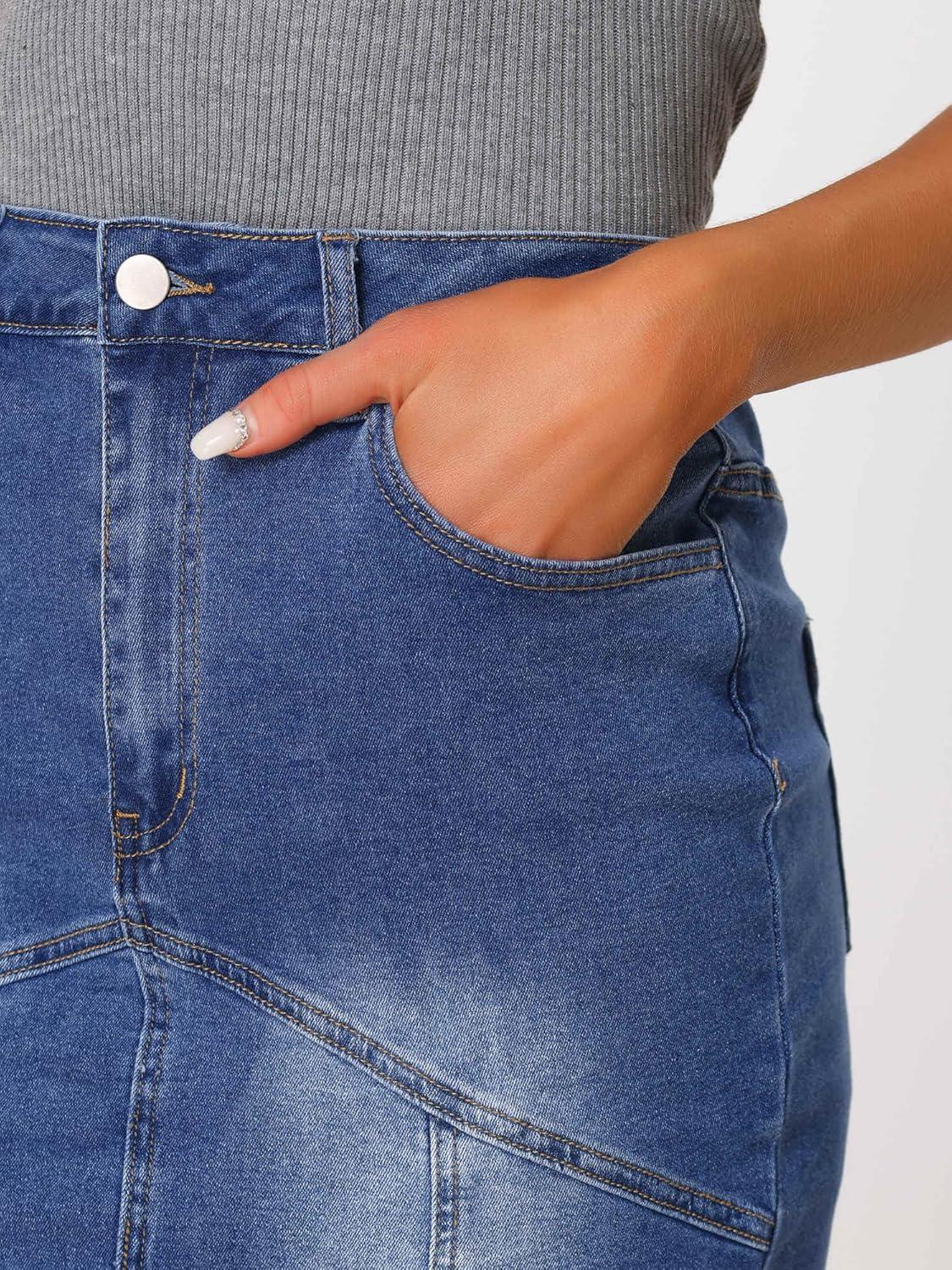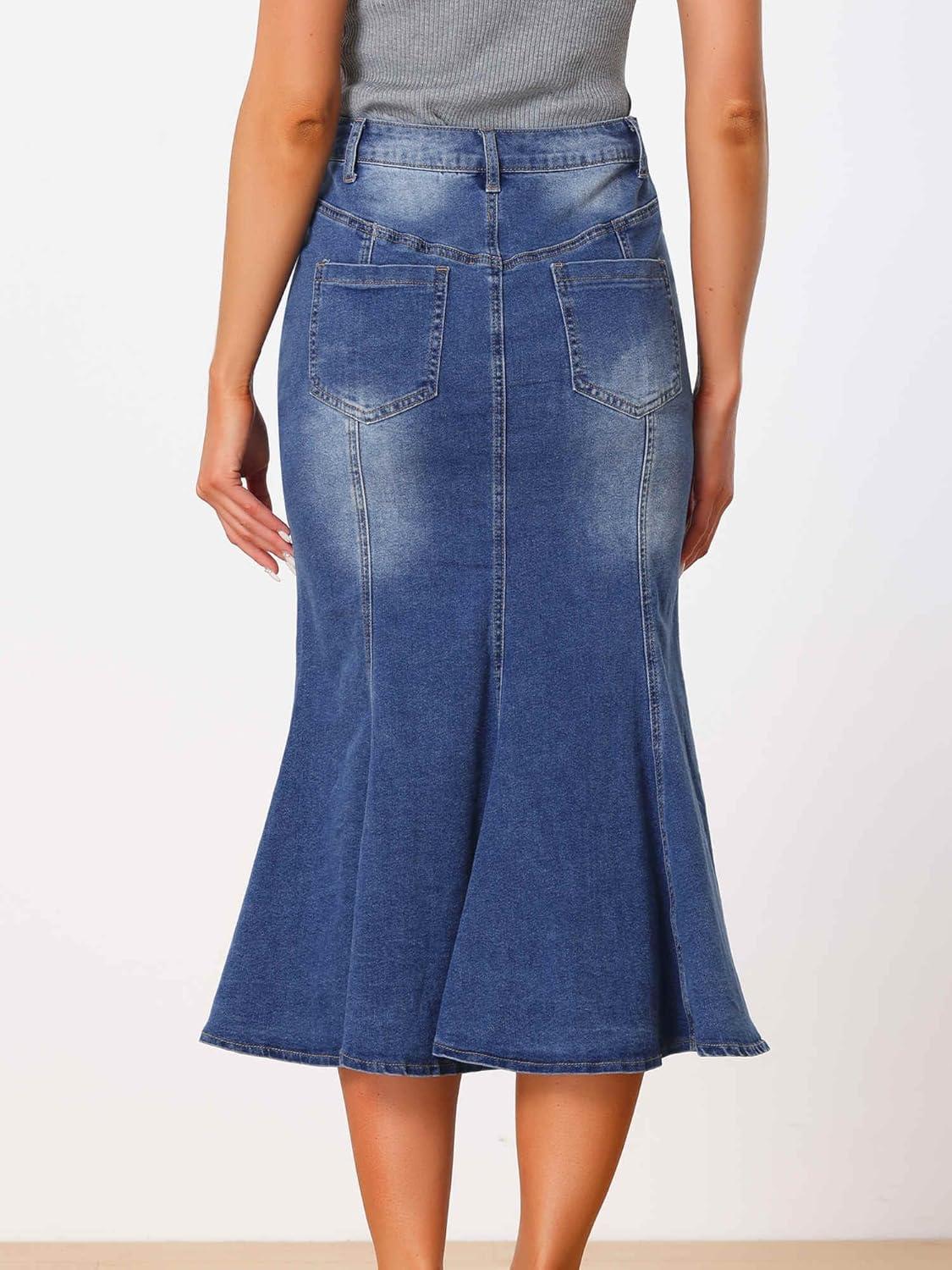 imageAllegra K Fishtail Denim Skirt for Women Casual Washed High Waisted Midi Jean SkirtsBlue