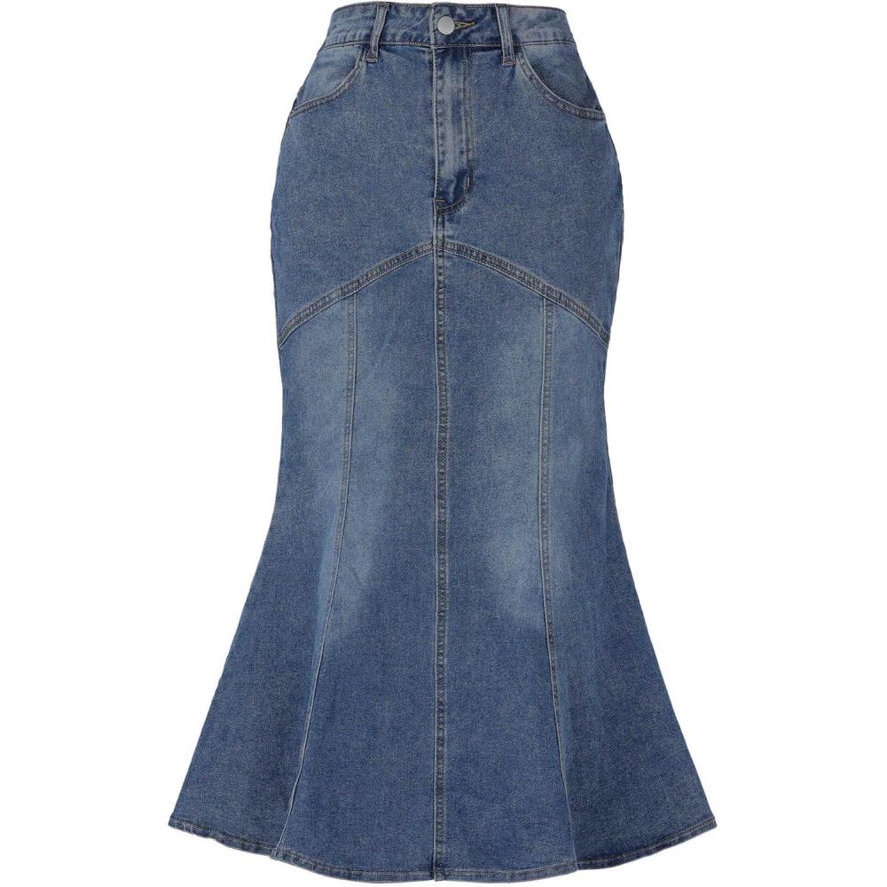 Allegra K Fishtail Denim Skirt for Women Casual Washed High Waisted Midi Jean Skirts(Grey Blue)