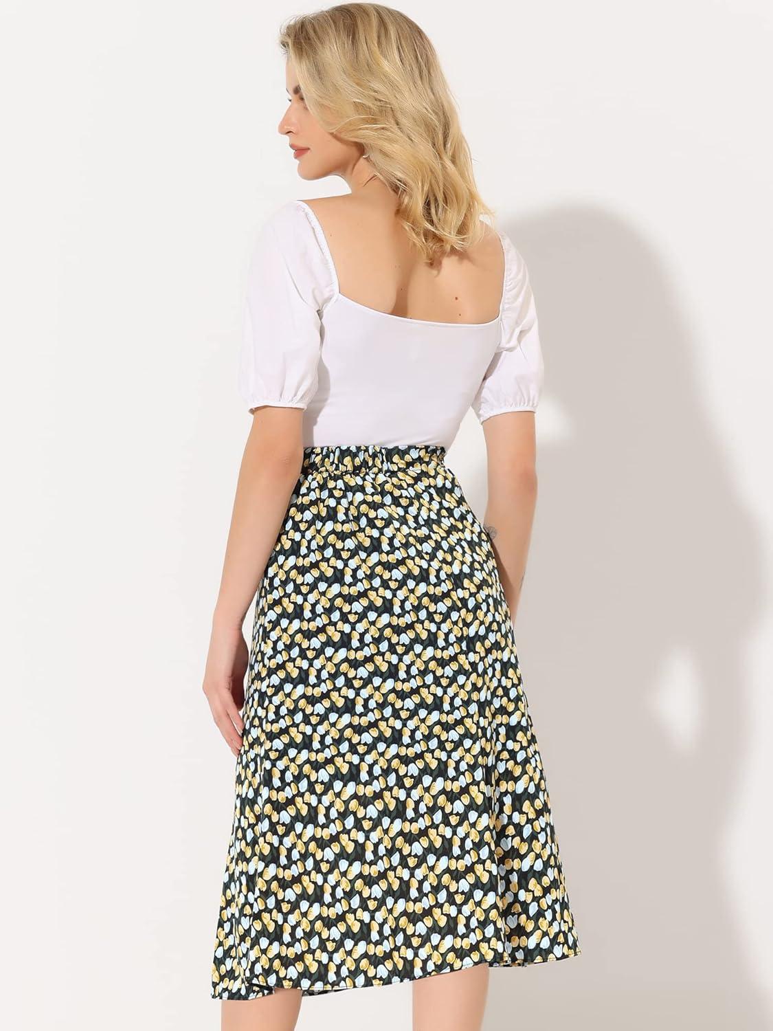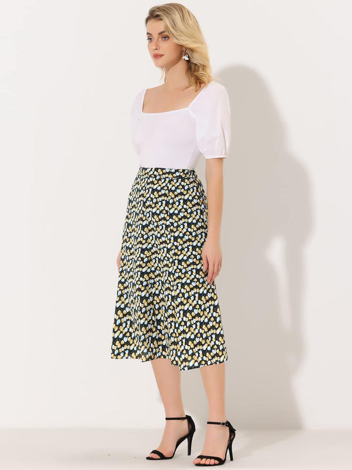 Allegra K Floral Skirt for Women’s Elastic Waist A-Line Midi Skirts(Blue)