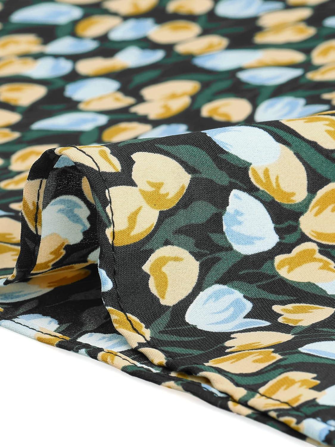 Allegra K Floral Skirt for Women’s Elastic Waist A-Line Midi Skirts(Black Blue)