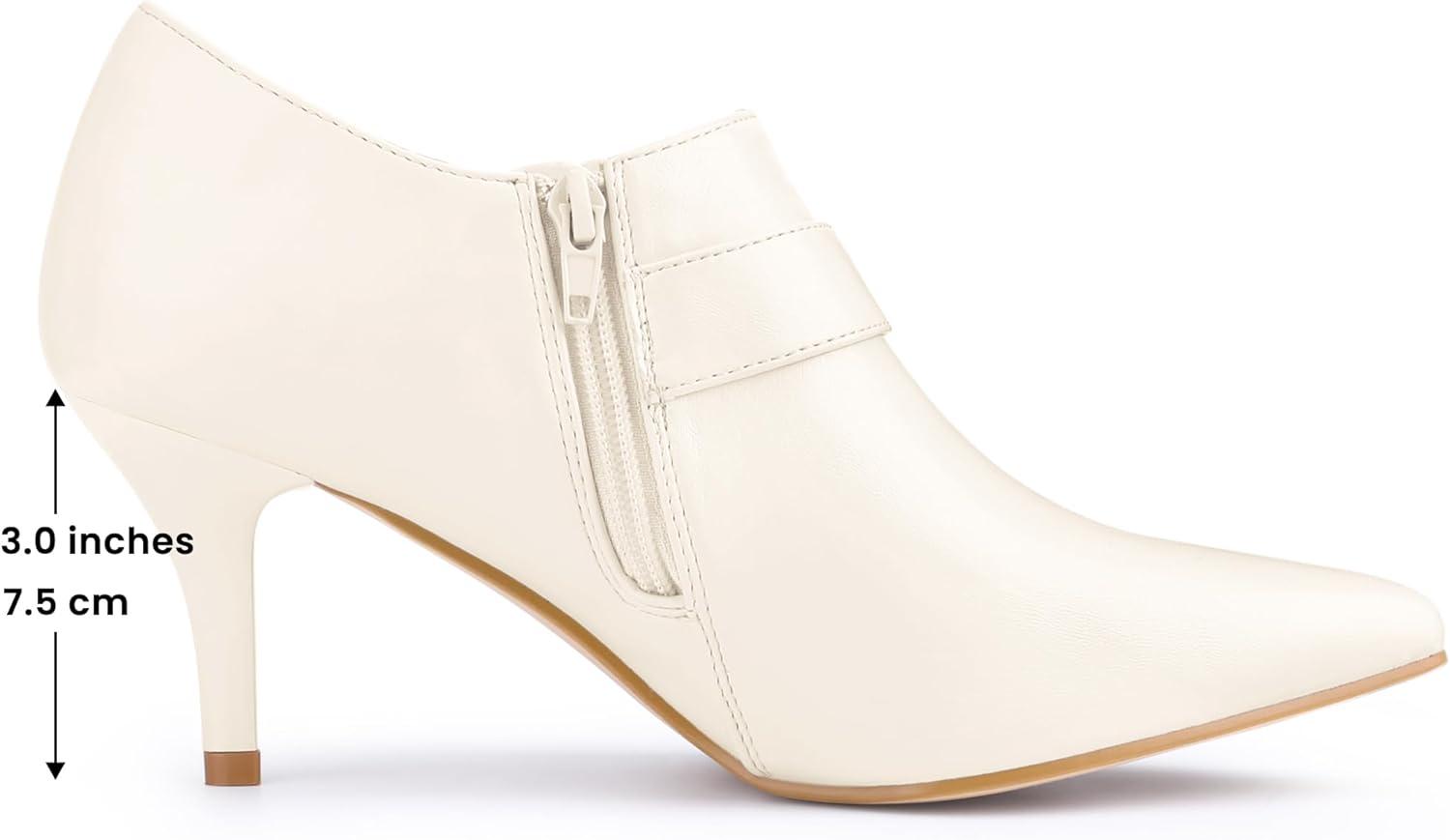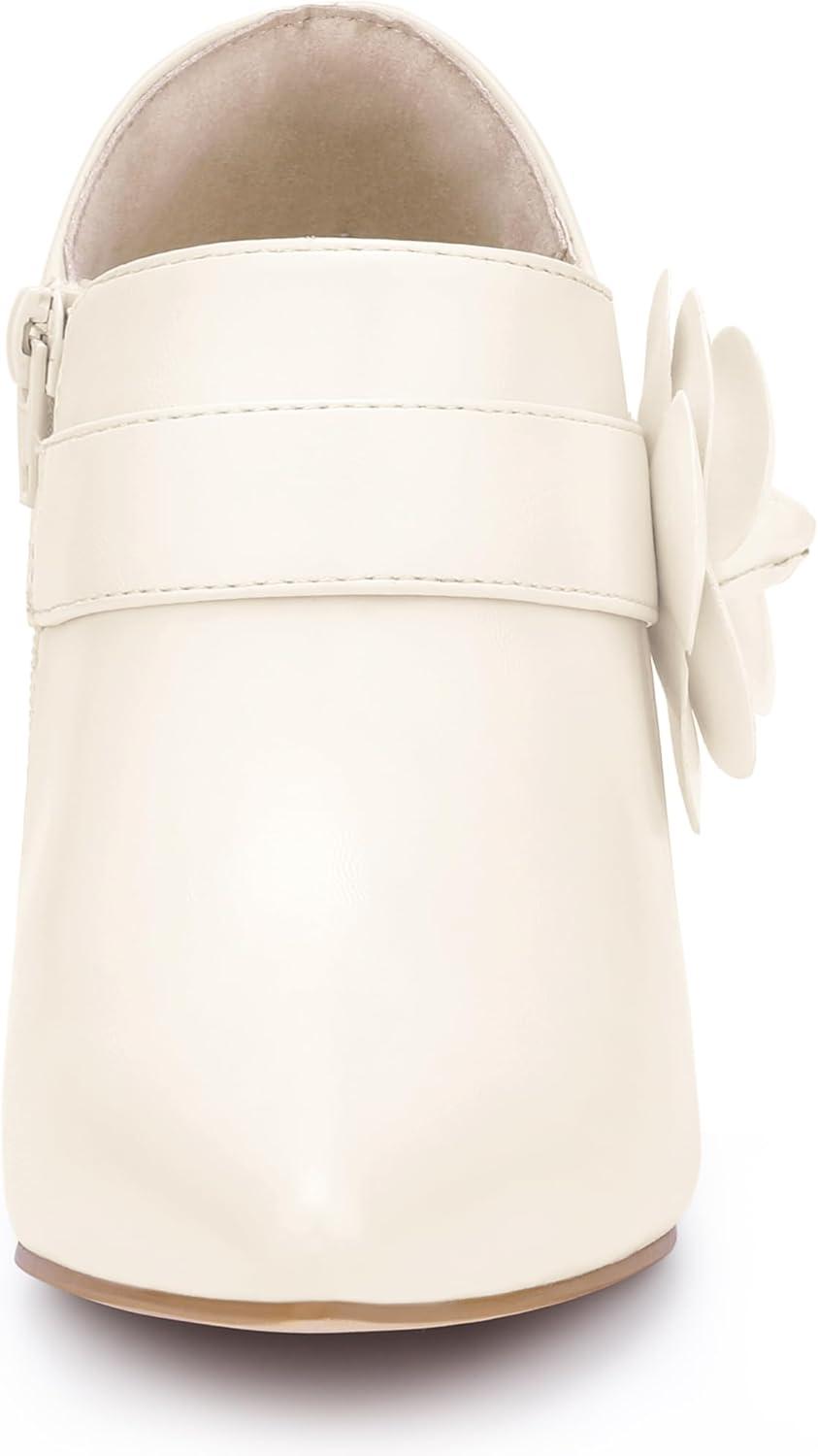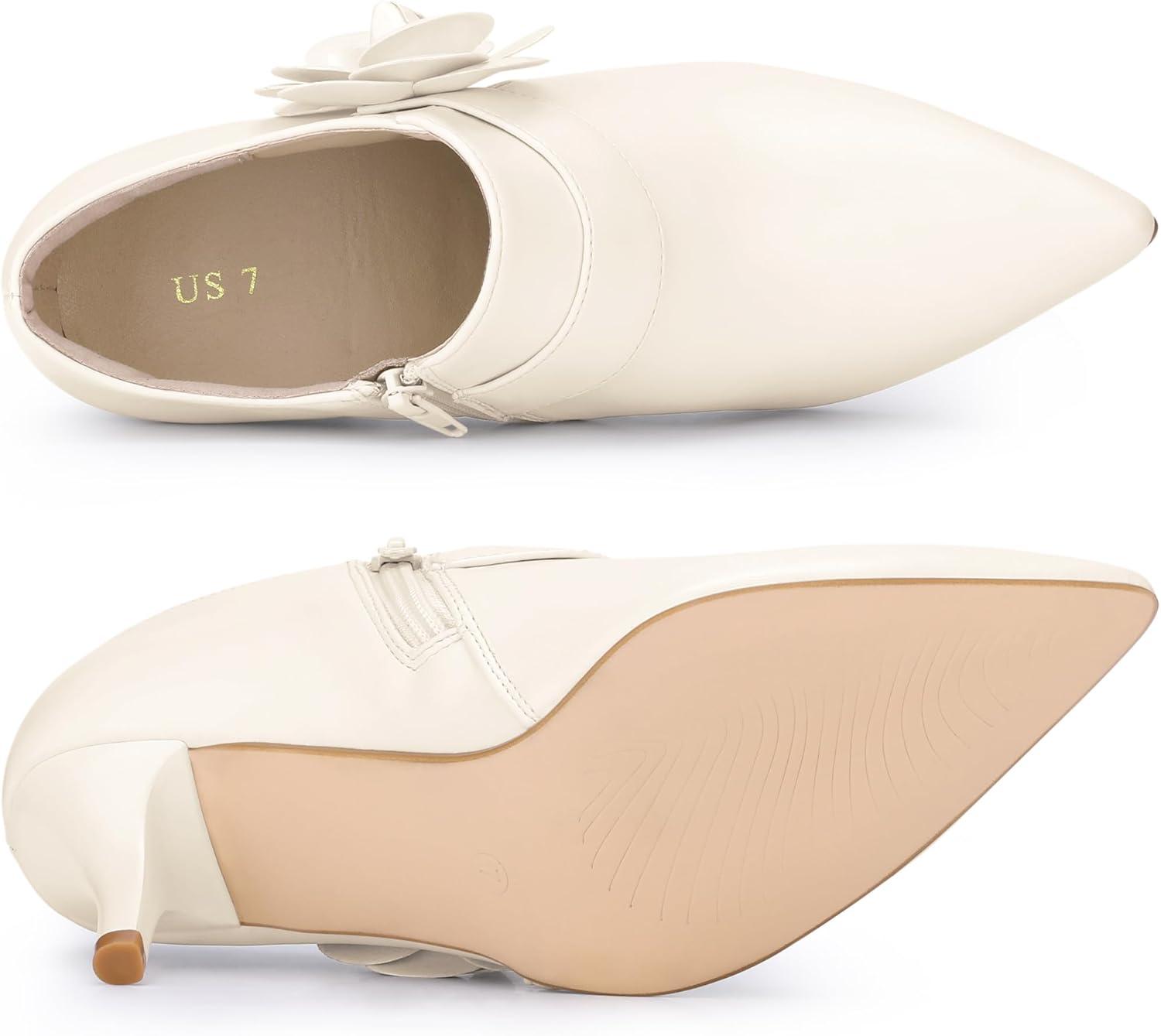 Allegra K Flower Stiletto Heels Pointy Toe Ankle Booties for Women(Cream)
