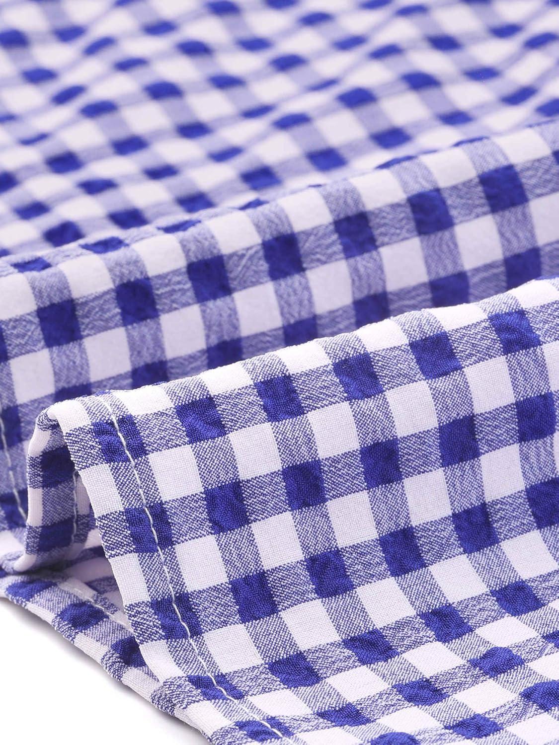 Allegra K Gingham Tops for Women Summer Cute Cap Sleeve Square Neck Plaid Shirts Casual Blouses(Blue White)