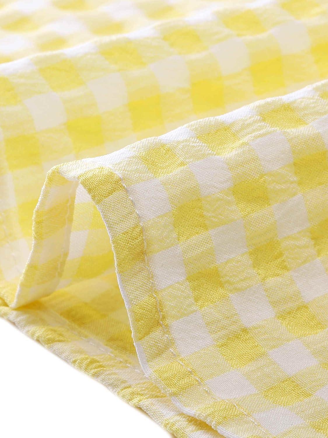 Allegra K Gingham Tops for Women Summer Cute Cap Sleeve Square Neck Plaid Shirts Casual Blouses(Yellow)