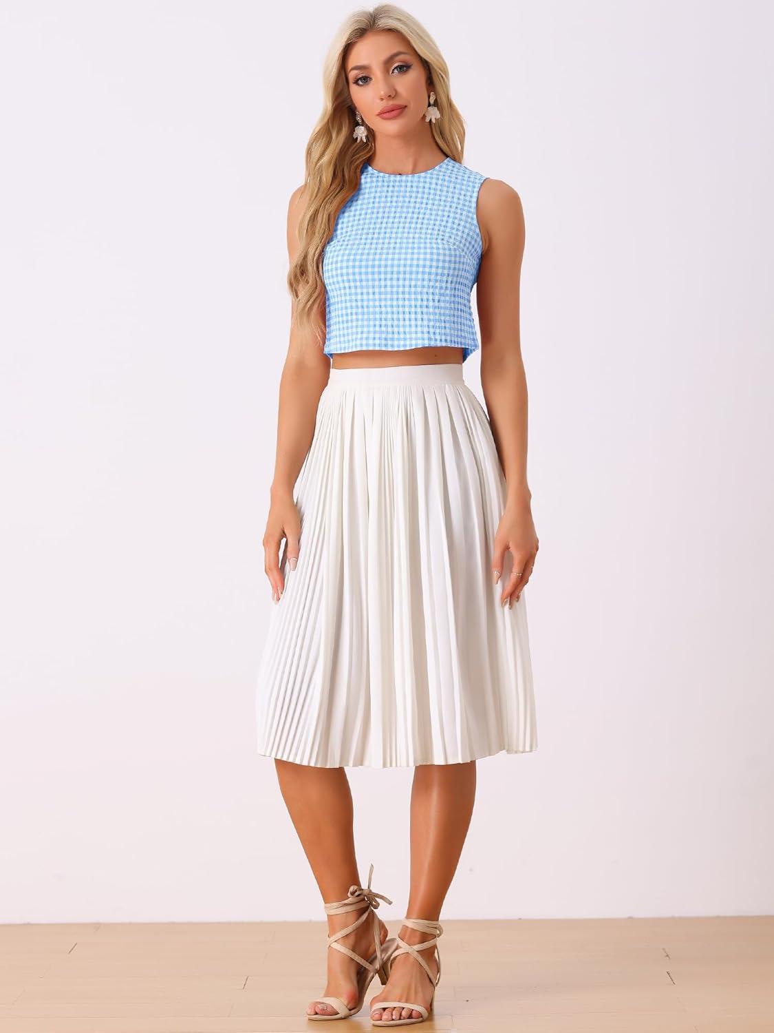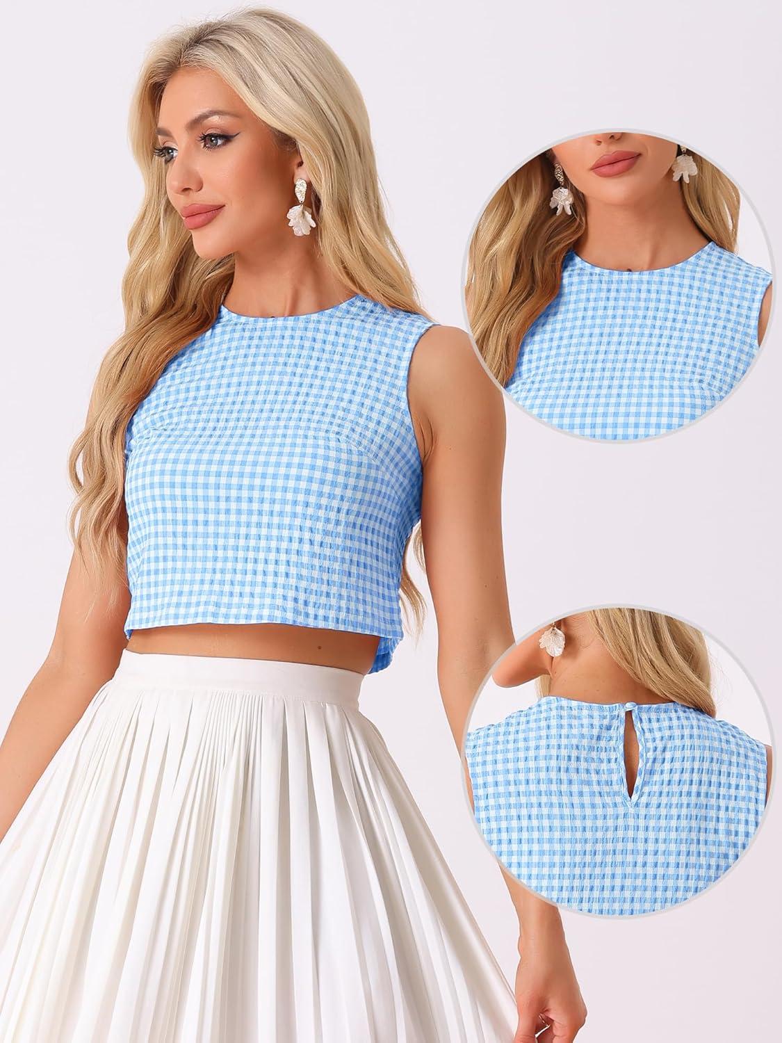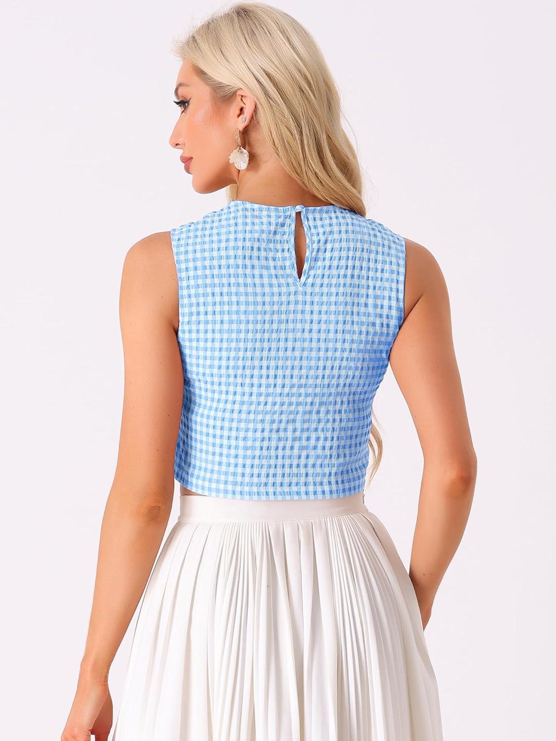 Allegra K GinghamTop for Women's Sleeveless 1950s Vintage Summer Blouse(Blue)