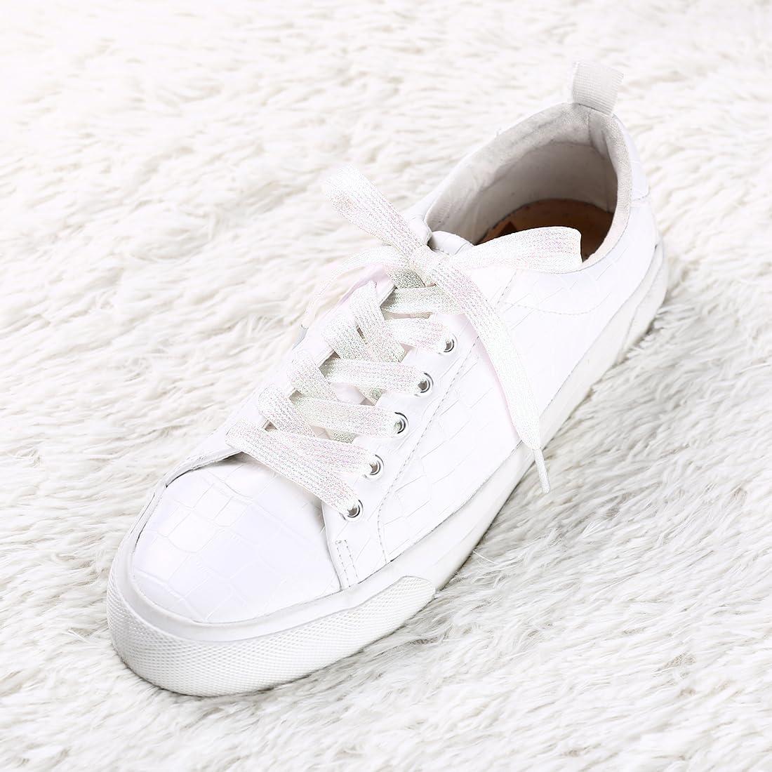 Allegra K Glitter Shiny Metallic Sparkling Shimmery Flat Sneakers Shoelace Shoe Laces Strings(White)