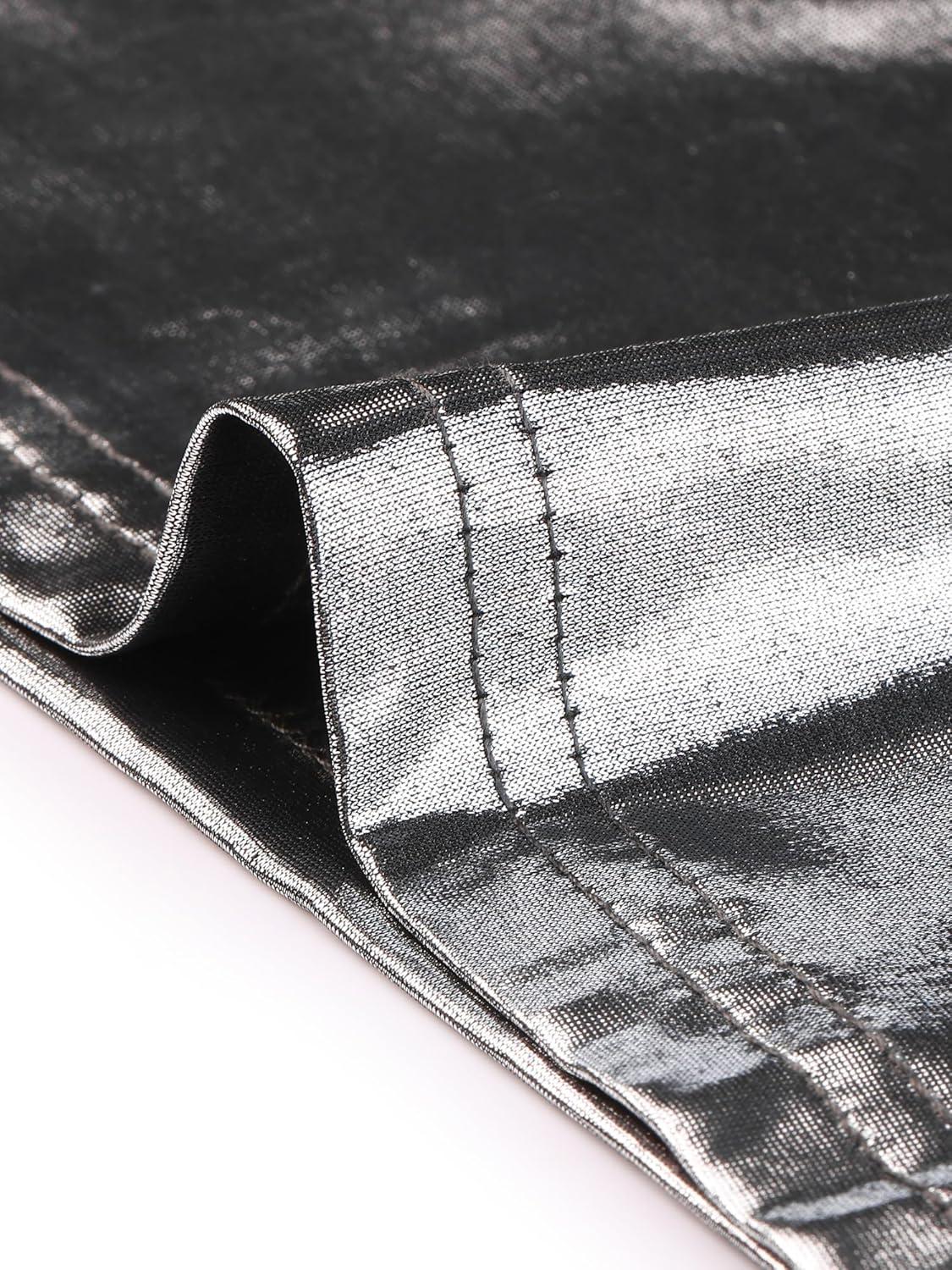 Allegra K Halloween Metallic Blouse for Women's Sparkly Party Shiny Bishop Sleeve Glitter Tops(Dark Silver)