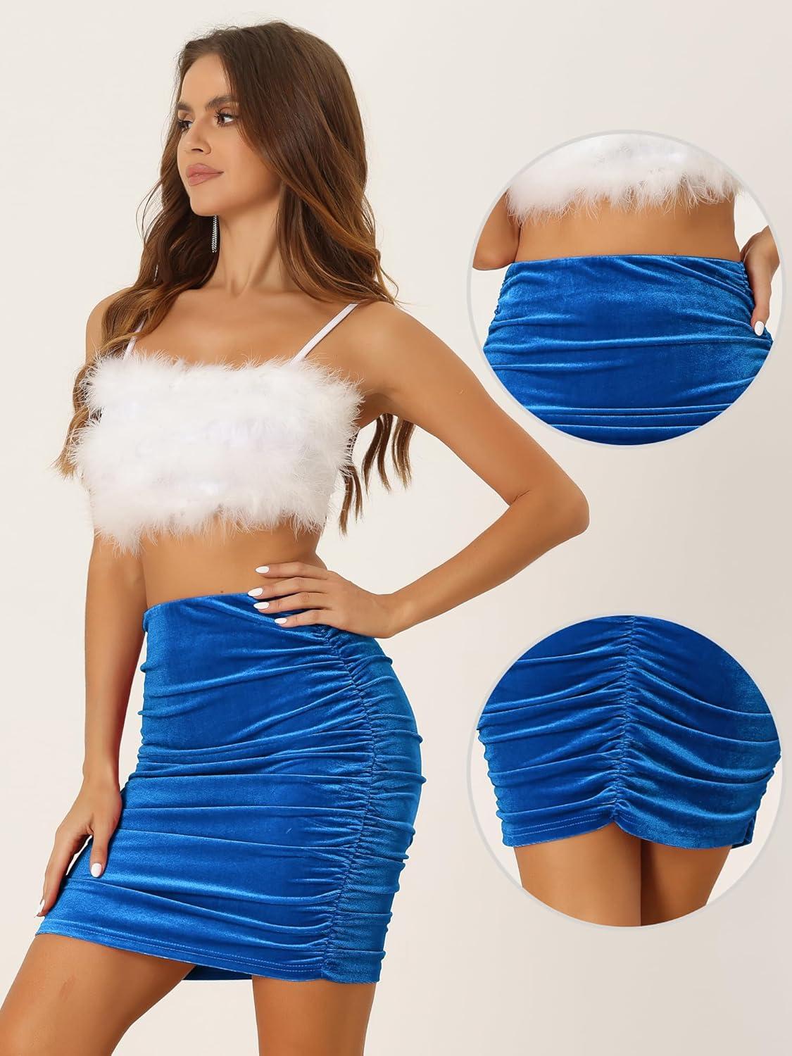 Allegra K Halloween Velvet Skirt for Women's Party Bodycon Ruched Mini Skirts(Royal Blue)