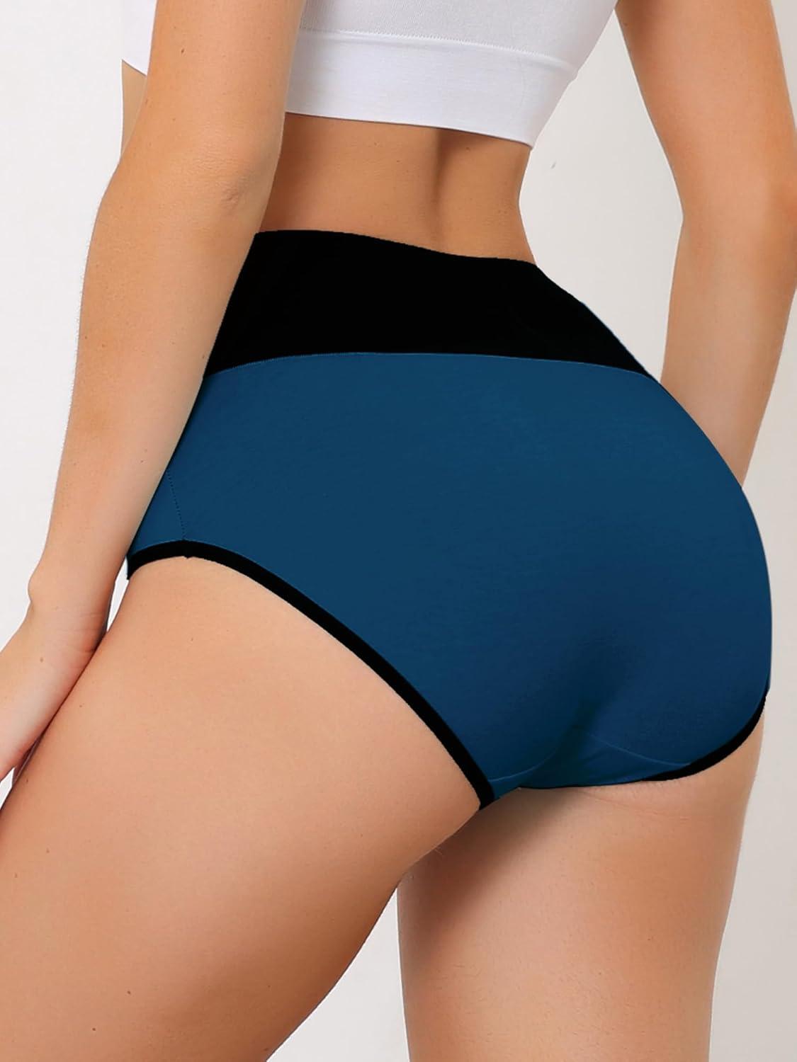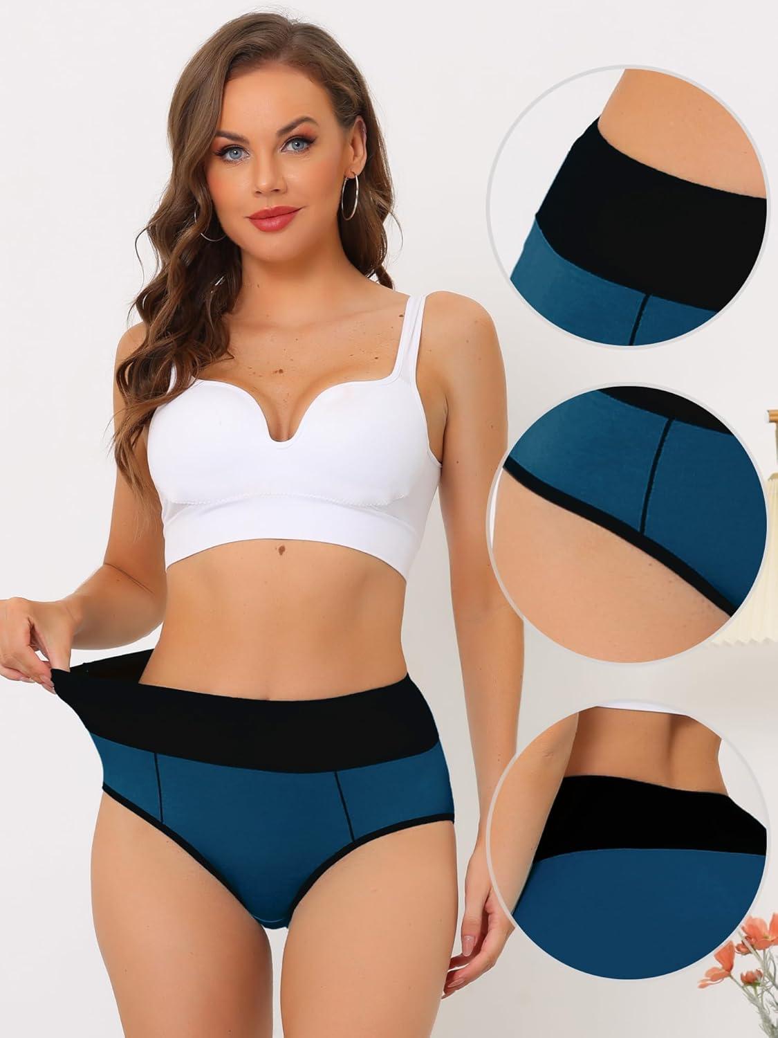 Allegra K High Waisted Panties for Women Tummy Control Colorblock Briefs Butt Lifting Underwear(Dark Blue)