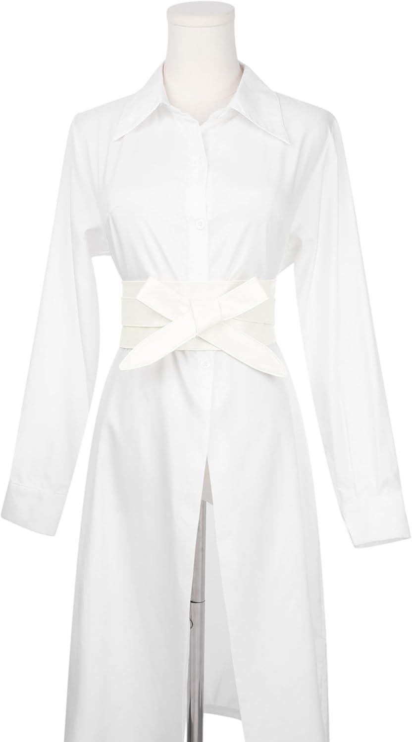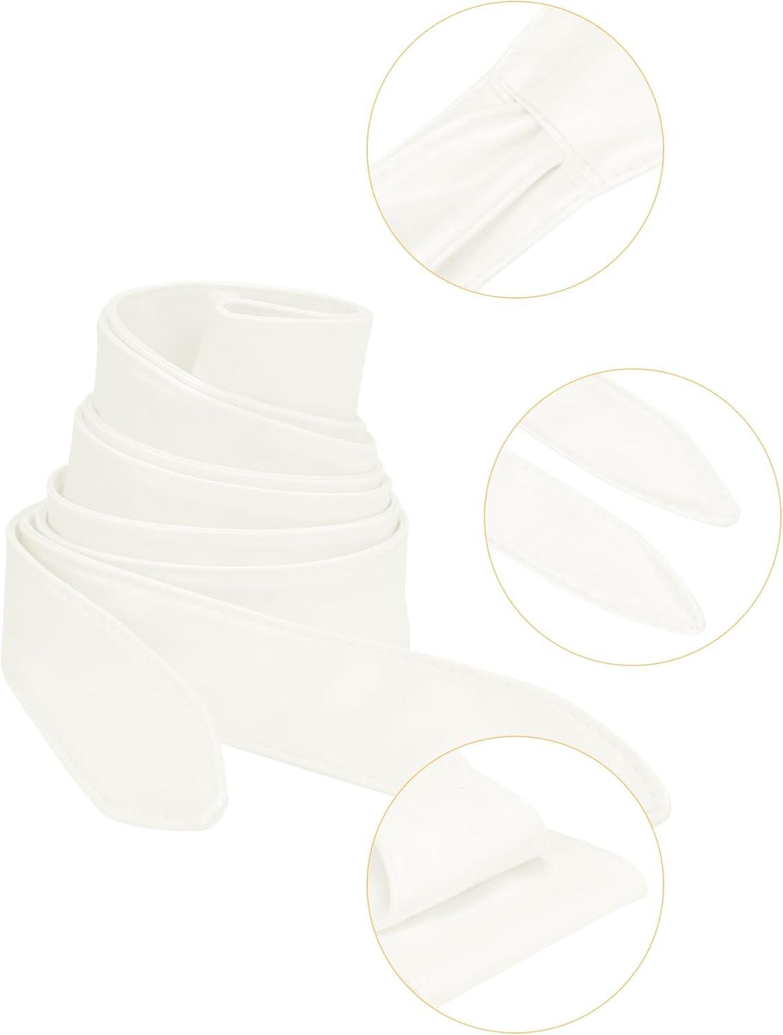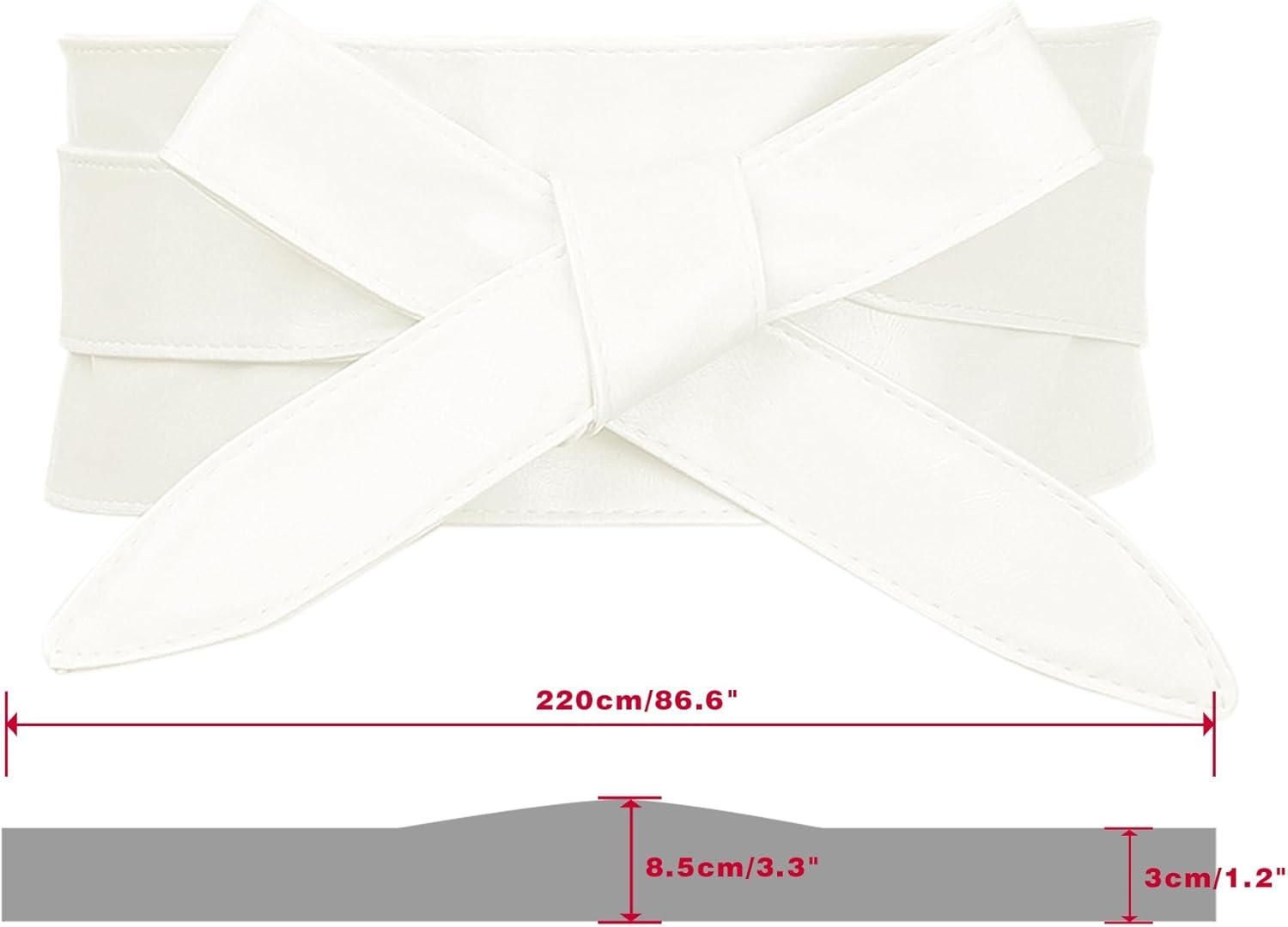 Allegra K Ladies Faux Leather Self Tie Bowknot Wide Waist Band Sash Obi Belt for Dresses(Cream)