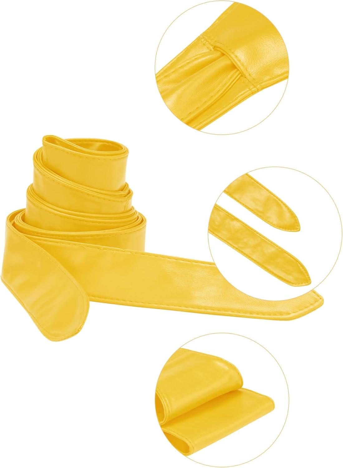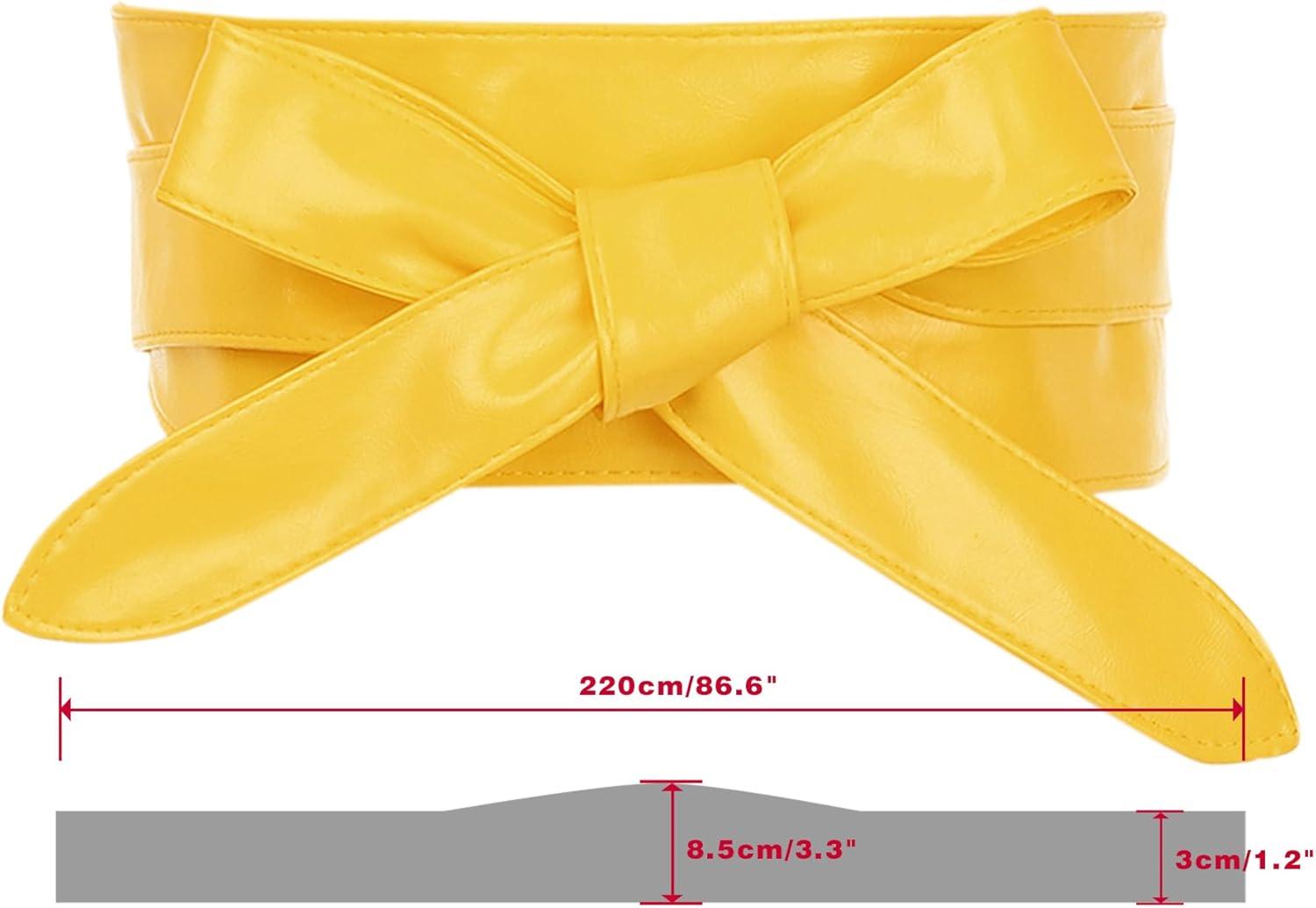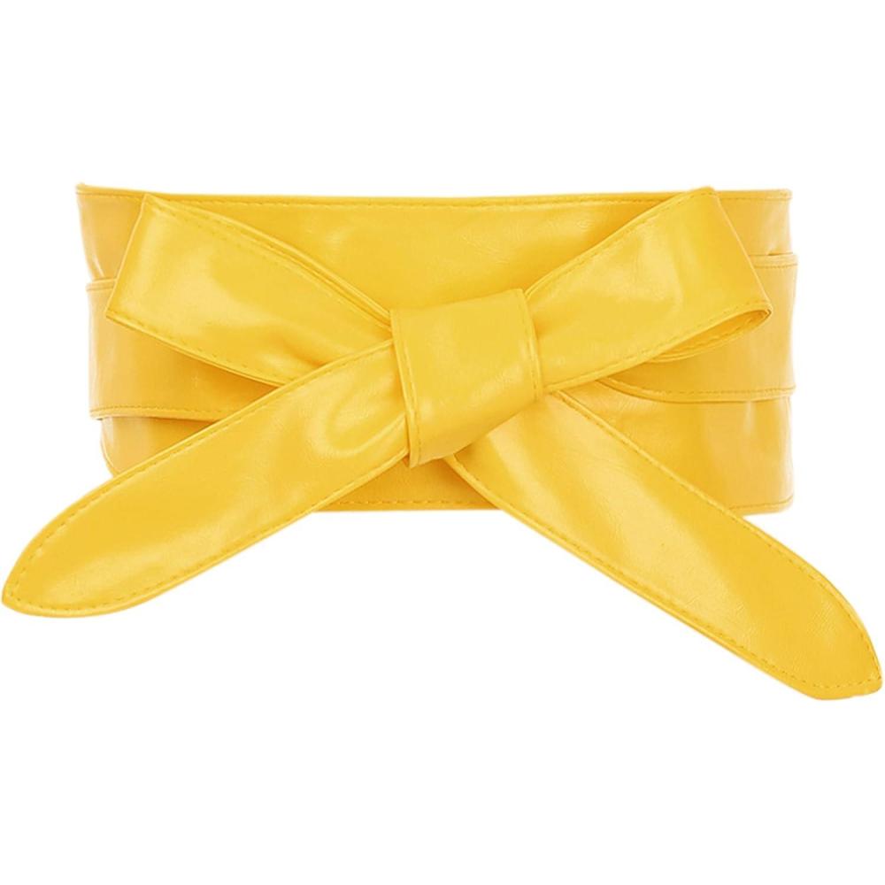 Allegra K Ladies Faux Leather Self Tie Bowknot Wide Waist Band Sash Obi Belt for Dresses(Yellow)