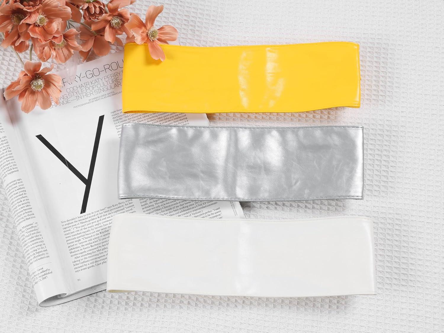 imageAllegra K Ladies Faux Leather Self Tie Bowknot Wide Waist Band Sash Obi Belt for DressesYellow