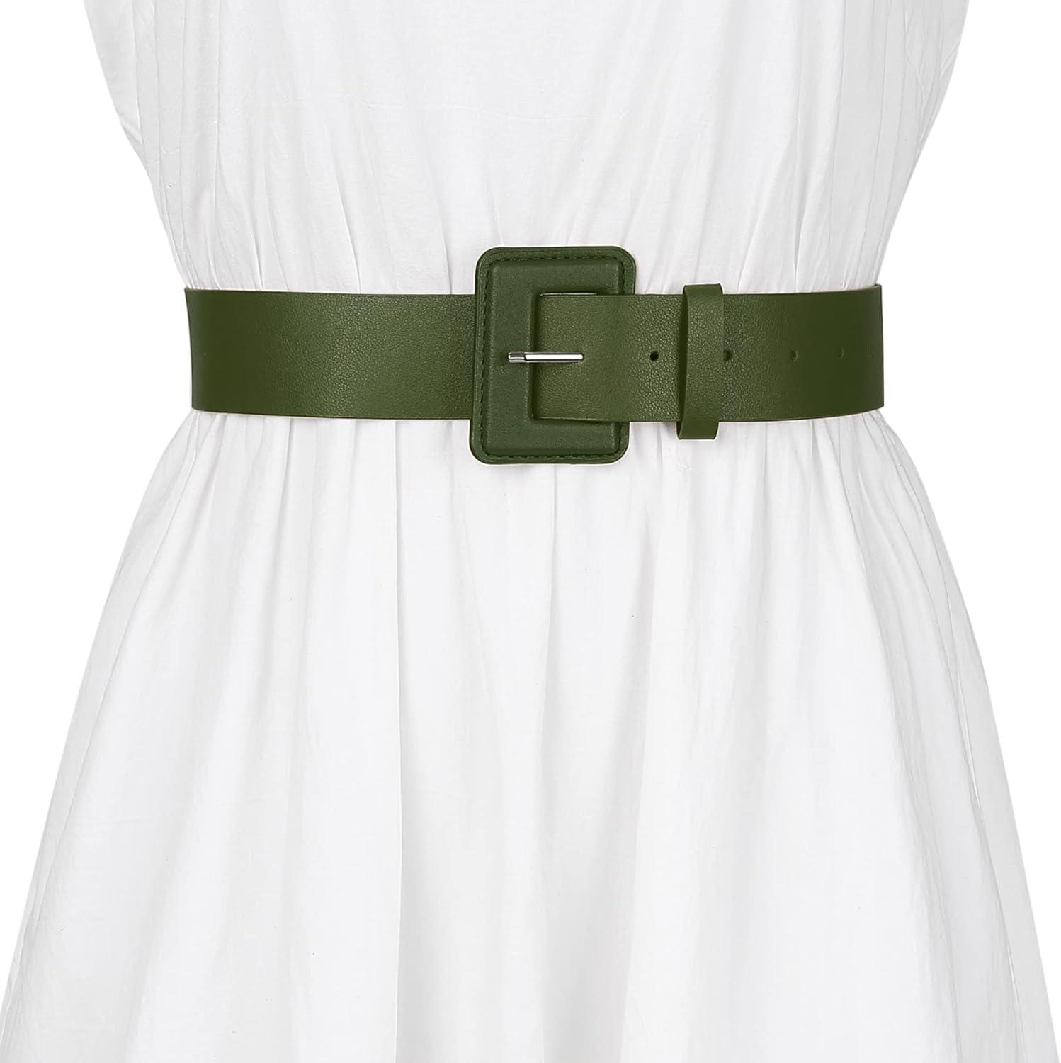 Allegra K Ladies Plus Size Pure Belts, Adjustable Rectangle Buckle Wide Waistband Belt for Dress(Green)