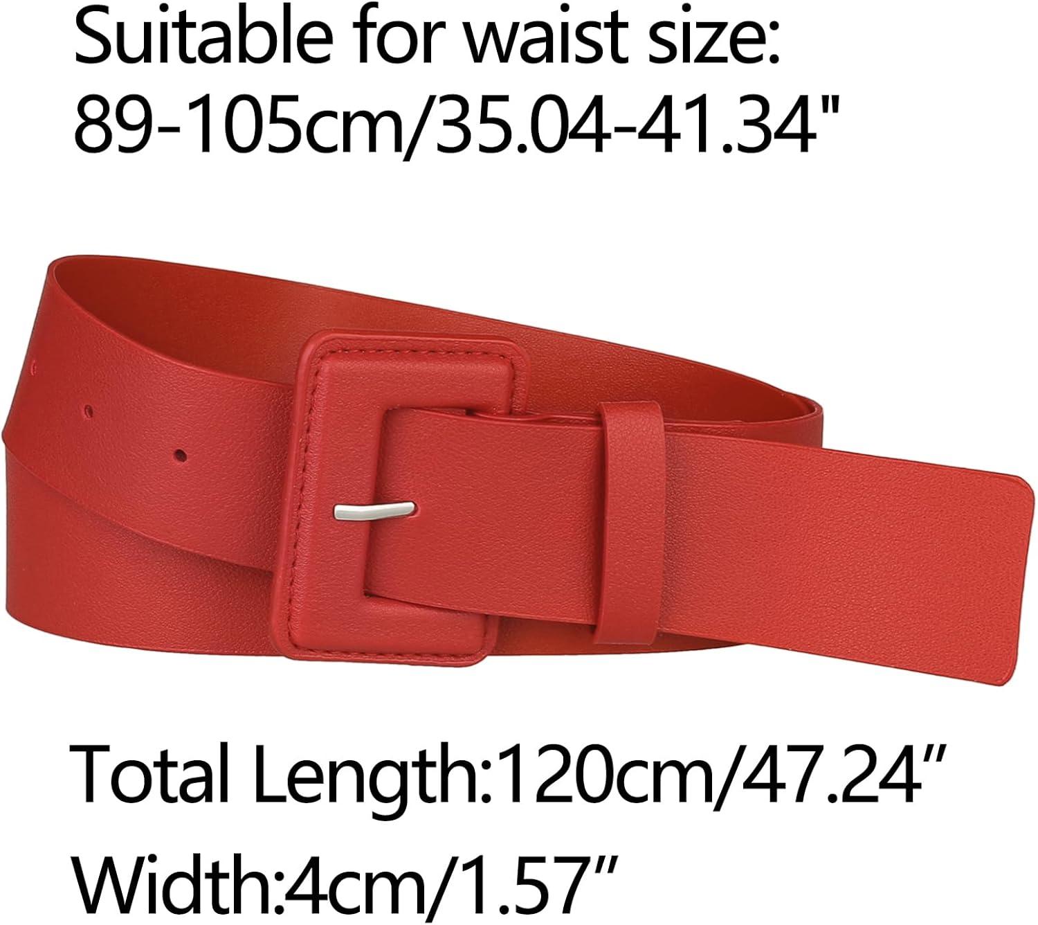 Allegra K Ladies Plus Size Pure Belts, Adjustable Rectangle Buckle Wide Waistband Belt for Dress(Red)