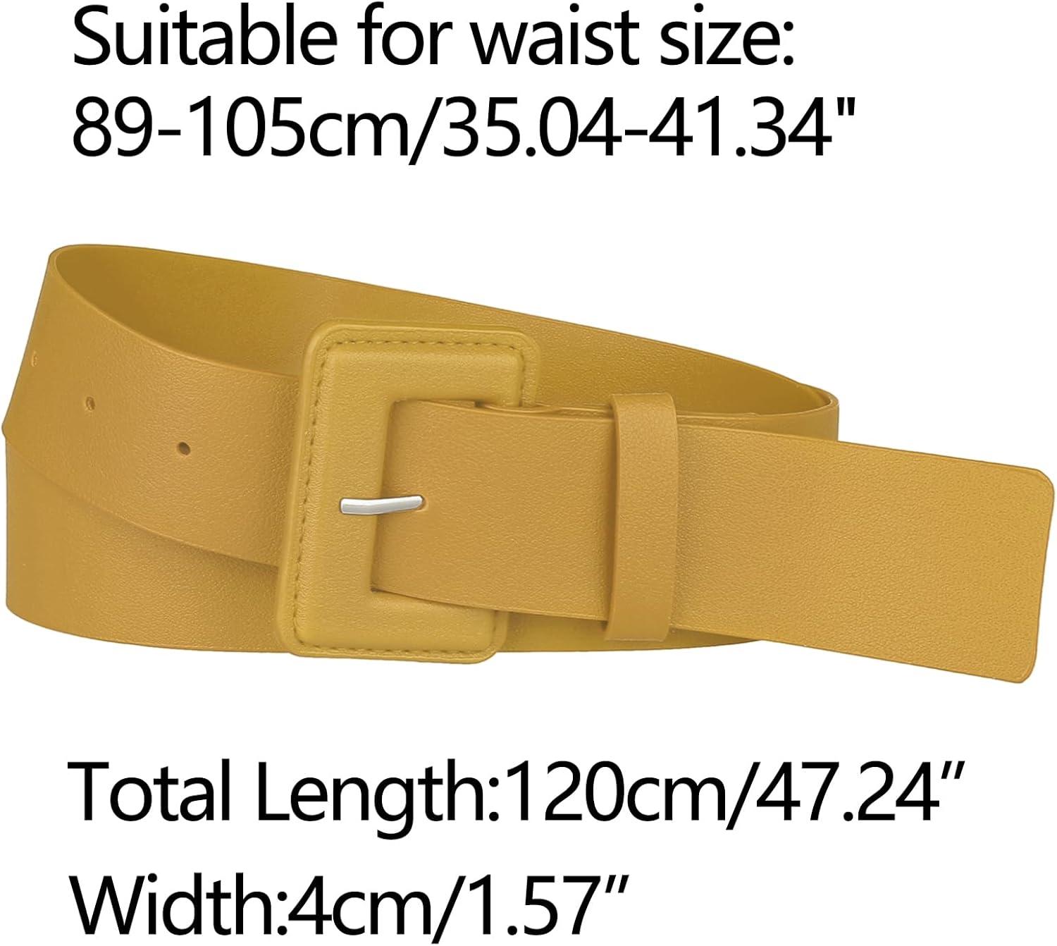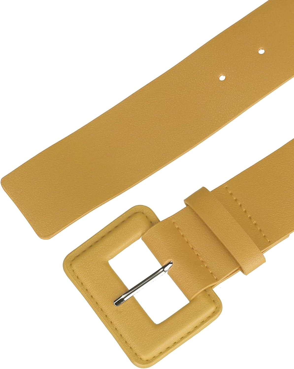 Allegra K Ladies Plus Size Pure Belts, Adjustable Rectangle Buckle Wide Waistband Belt for Dress(Yellow)