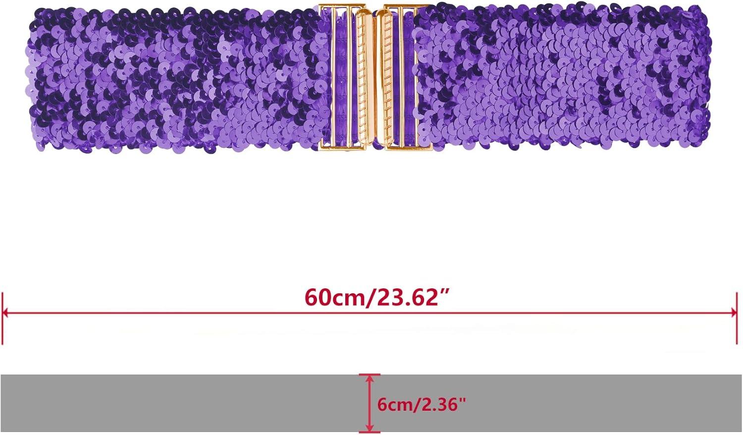 Allegra K Ladies Shinny Wide Waist Belts Interlock Buckles Sequins Decor Stretchy Belts for Women 2PCS(Light Purple)
