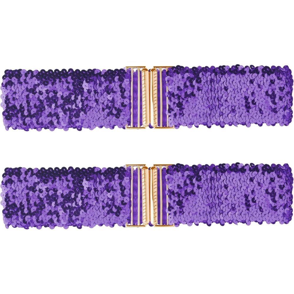 imageAllegra K Ladies Shinny Wide Waist Belts Interlock Buckles Sequins Decor Stretchy Belts for Women 2PCSLight Purple