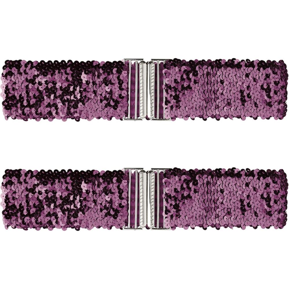 imageAllegra K Ladies Stretchy Wide Waist Belts Interlock Buckles Shinny Sequins Decor Belts for DressesDark Purple