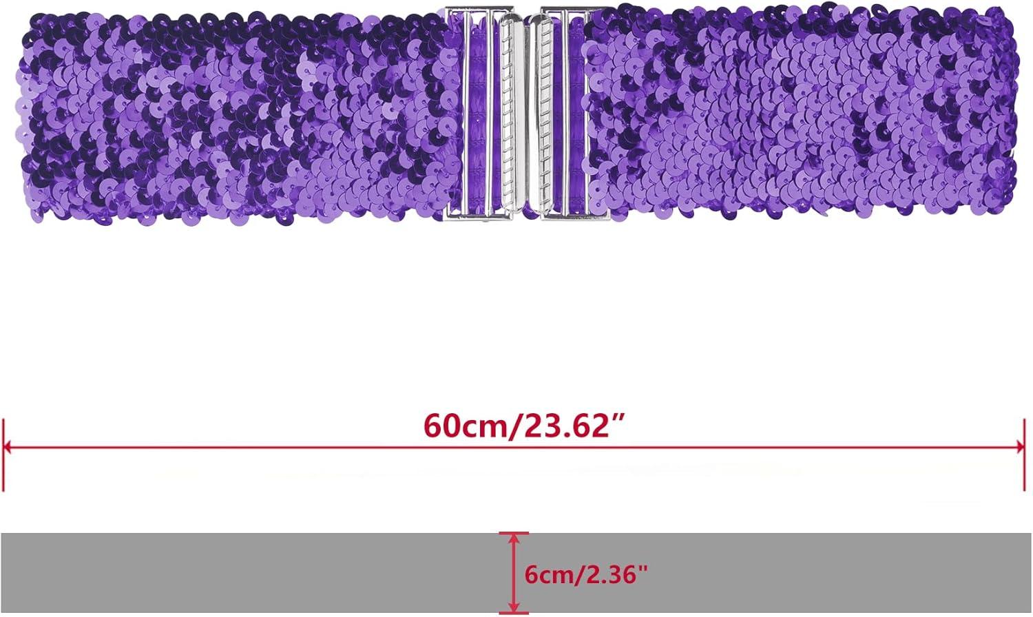 Allegra K Ladies Stretchy Wide Waist Belts Interlock Buckles Shinny Sequins Decor Belts for Dresses(Light Purple)