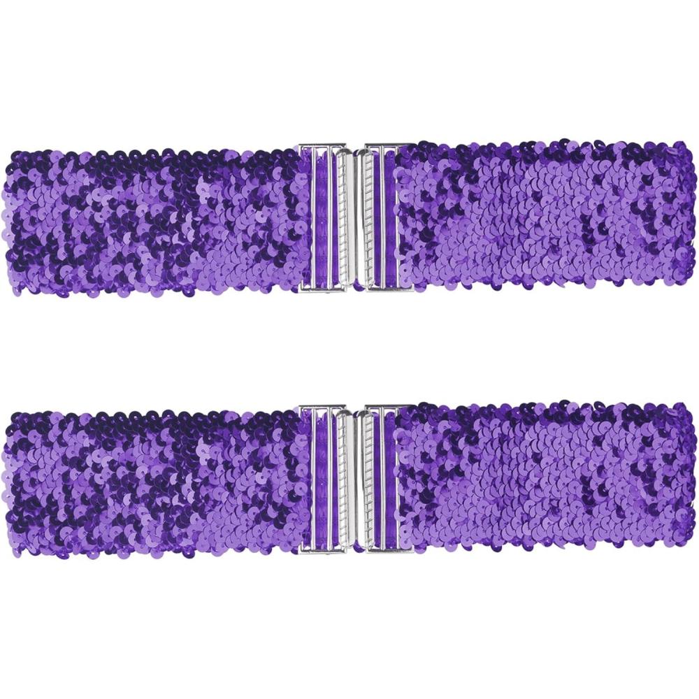 imageAllegra K Ladies Stretchy Wide Waist Belts Interlock Buckles Shinny Sequins Decor Belts for DressesLight Purple