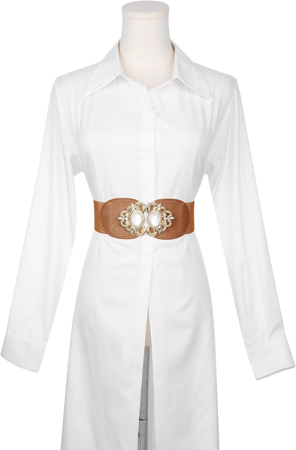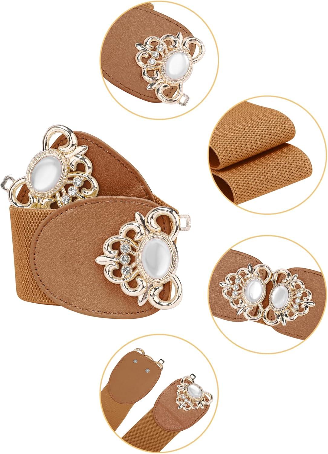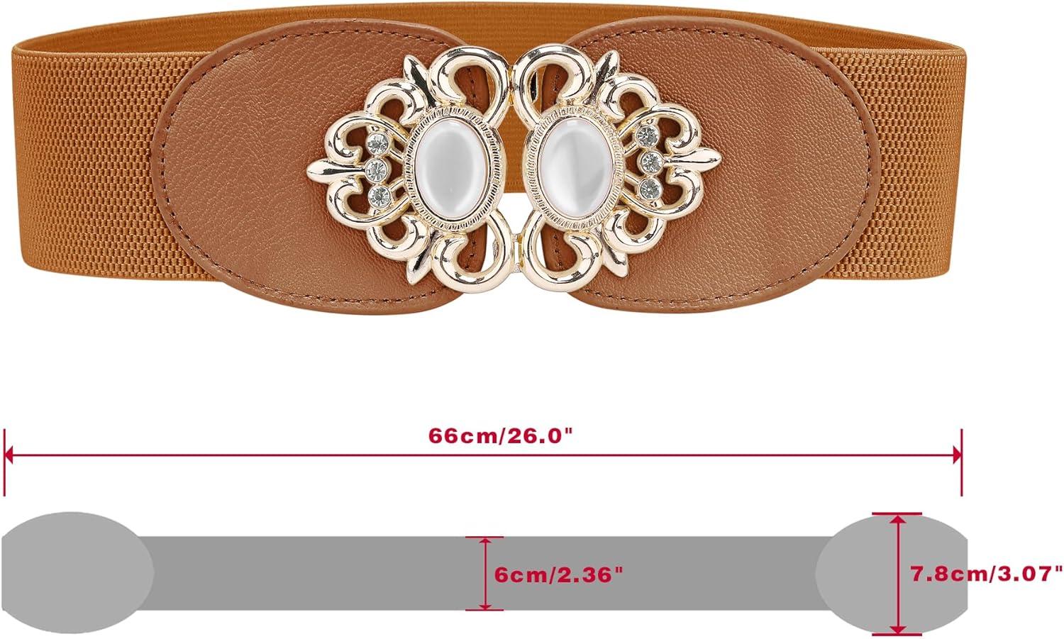 Allegra K Lady 2.36" Width Elastic Belts, Faux Leather Opal Beaded Rhinestone Inlaid Stretchy Cinch Waistband for Dress(Camel)