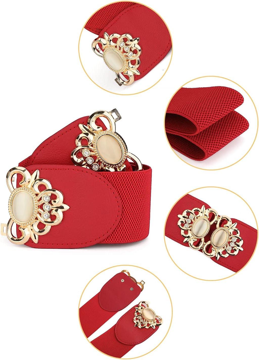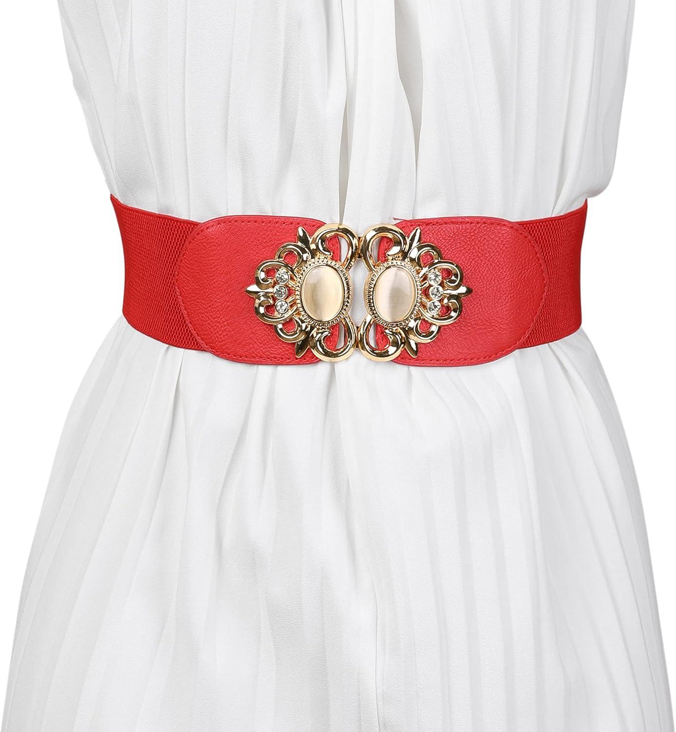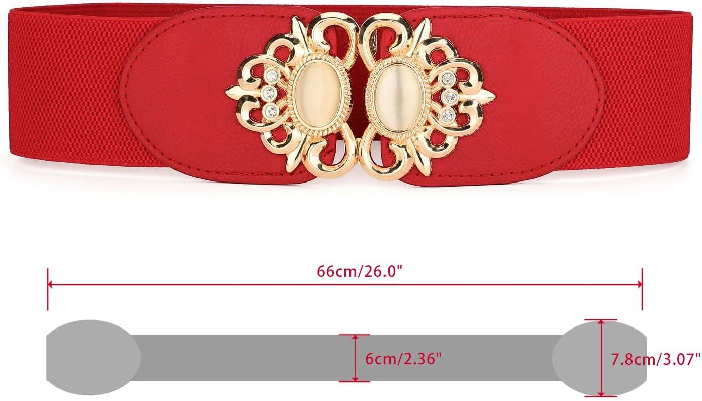 Allegra K Lady 2.36" Width Elastic Belts, Faux Leather Opal Beaded Rhinestone Inlaid Stretchy Cinch Waistband for Dress(Red)